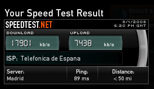 Había venido a esta locura llamada Campus Party por trabajo hace 5 años -cuando aún se hacía en la Ciudad de las Artes y las Ciencias- y siempre quería volver, pero por unas cosas y otras al final nunca tenía la oportunidad. Este año por fin lo he logrado y nos hemos echado la manta (y el portátil, y los sandwiches, y los sacos, y yo qué sé que más) a la cabeza (¡pipi!). Acabamos de aterrizar en un par de puestecitos al lado de Juan y Carol (¡eeeeh!) así que estoy en plan novato dominguero: no me entero de nada. Lo primero que he hecho, comprobar el ancho de banda de aquí a ver qué tal iba ;)