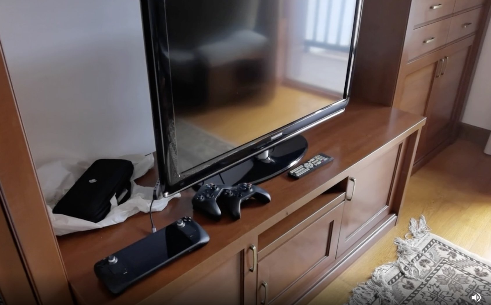 Gracias al invento hemos podido echar unos piques legendarios al 'FIFA 22'. Unos con los que nos hemos reído (y sufrido, no veáis qué tensión) a lo bestia. La consola se ha comportado de manera excepcional en todo momento, fluida y sin cortes raros. Nos dimos cuenta tarde de que en la versión para PC se puede configurar cada mando sin problemas (en la Xbox tienes que usar cuentas distintas, es una historia), y como jugamos con distintos botones él se adaptó a los míos al principio, aunque al final descubrimos que se podían configurar por separado y le pudimos dar a tope. La batería aguantó bastante, por cierto —que redirijas la salida de vídeo a la tele ayuda al consumo energético— y una de las tardes yo creo que estuvimos jugando casi tres horas sin parar a la hora de la siesta.