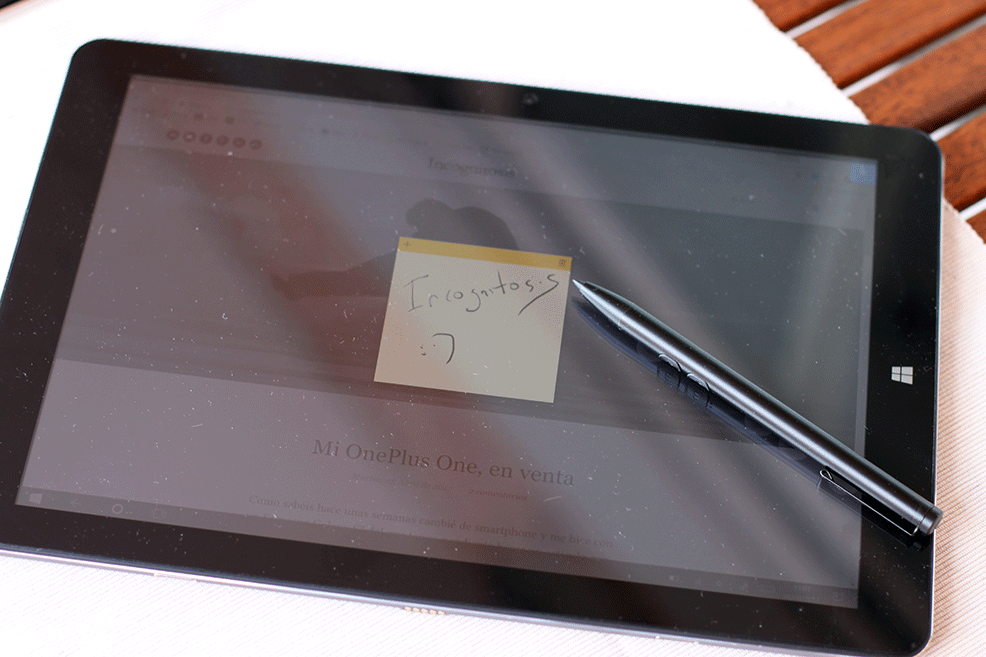 Por ejemplo, que en ese stylus la punta se retrae ligeramente en cuanto toca el cristal, haciendo que la sensación sea no la de escribir sobre el cristal, sino la de hacerlo sobre el papel. En el Chuwi Hi12 la sensación no es mala, pero se nota que estás dibujando y escribiendo sobre esa superficie de cristal. A eso se le une la sensibilidad del stylus, que sin ser mala no es desde luego la del stylus del Surface Pro 3, en el que los niveles de presión son más amplios y se detectan mejor.