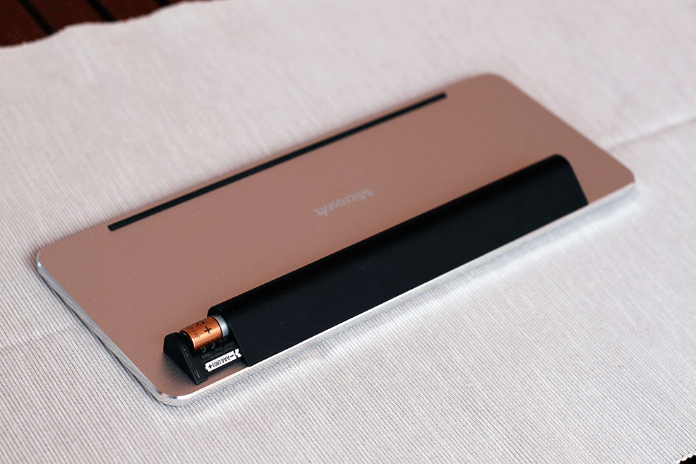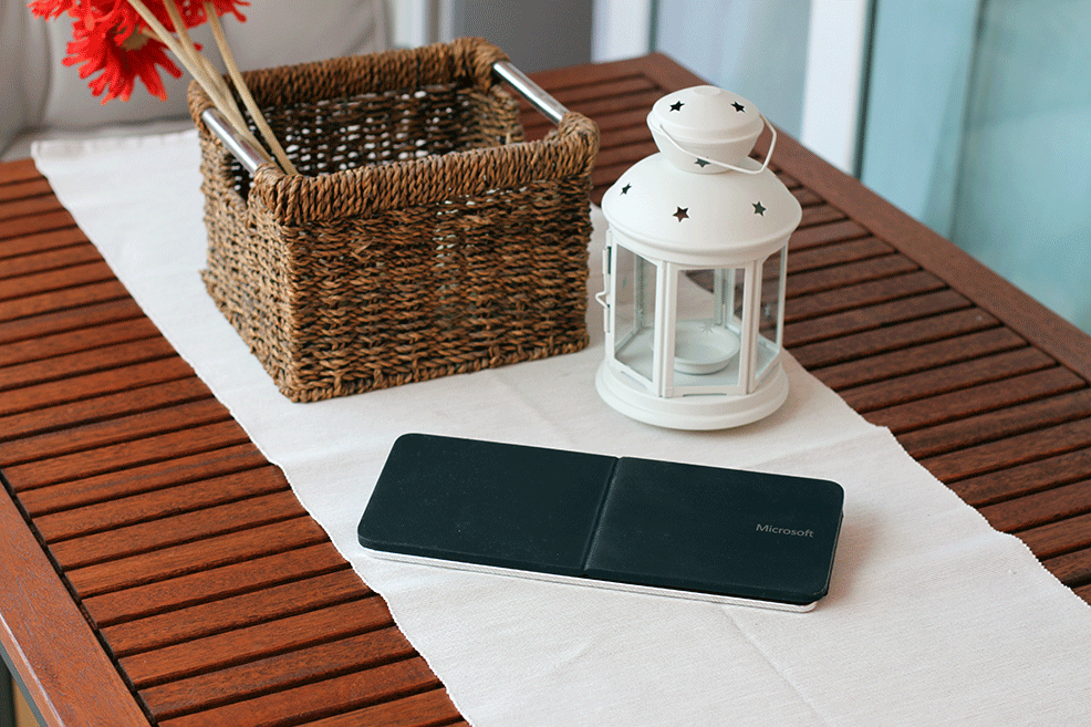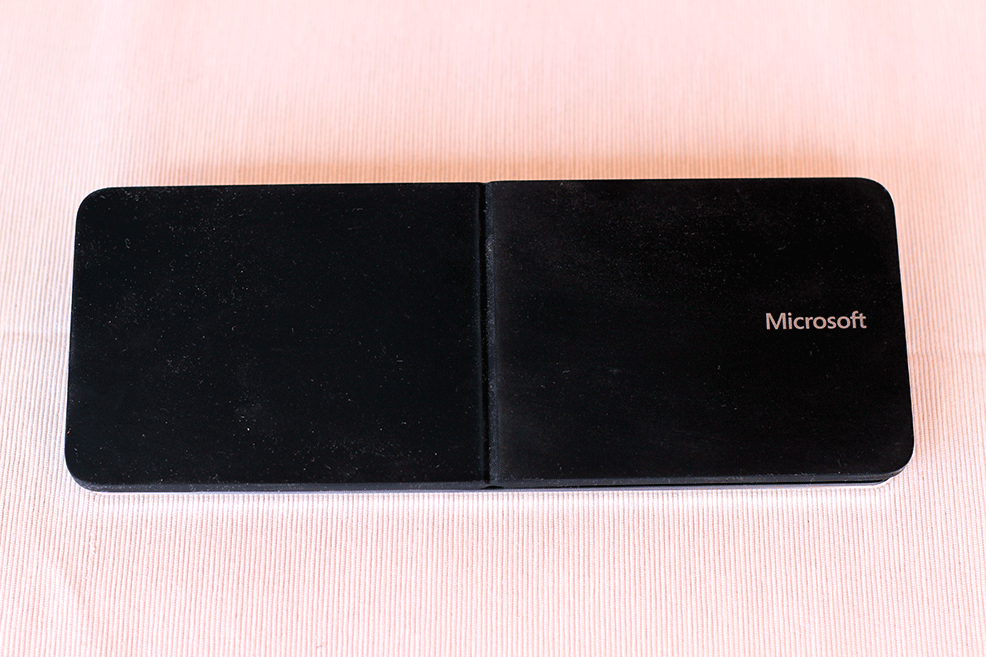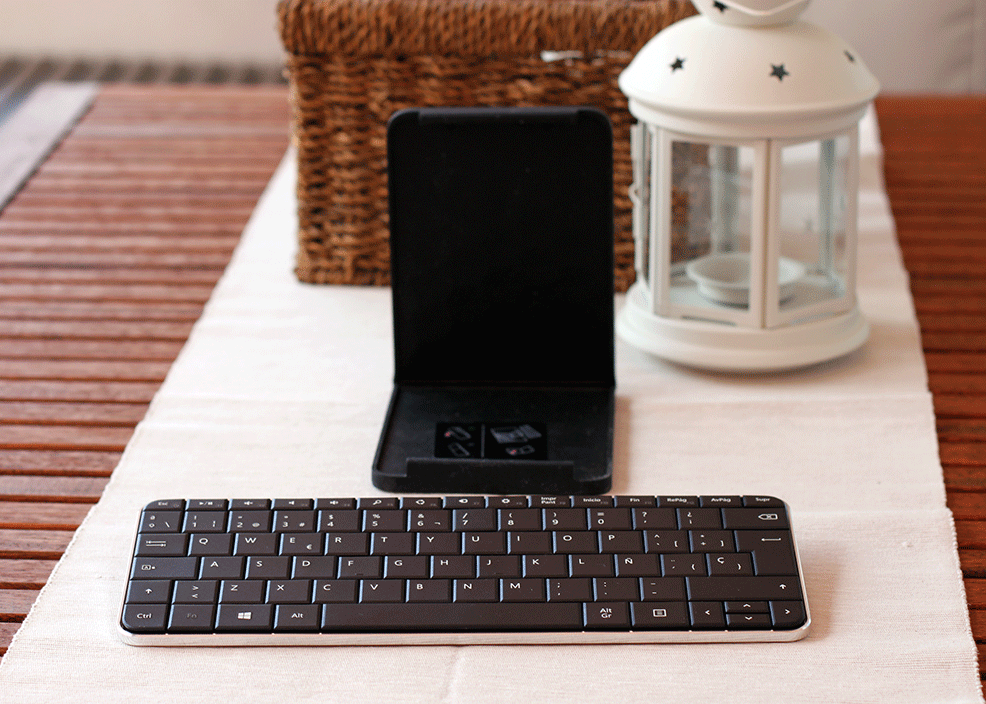 El problema tenía solución, claro. Renunciar al teclado oficial y acudir a un dispositivo alternativo. Estuve barajando opciones y miré algunos modelos —incluso de teclados plegables—, y al final me decidí por el Microsoft Wedge, un teclado que lleva tiempo a muy buen precio —a mí me costó 29,99 euros en Amazon— y que además de tener un formato chulo incluía un accesorio simpático: una tapa que se dobla para convertirse en soporte para el tablet. Qué maravilla.