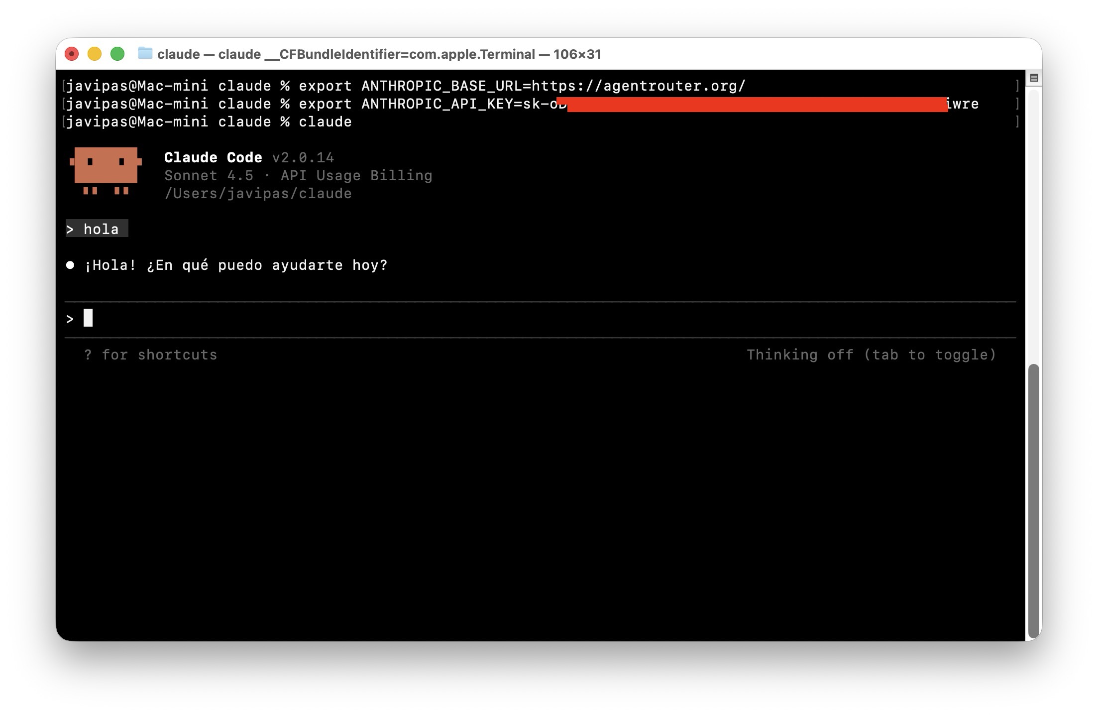 export ANTHROPIC_API_KEY=sk-xxxEse sk-xxx lo sustituís por esa clave (key) que acabáis de crear.