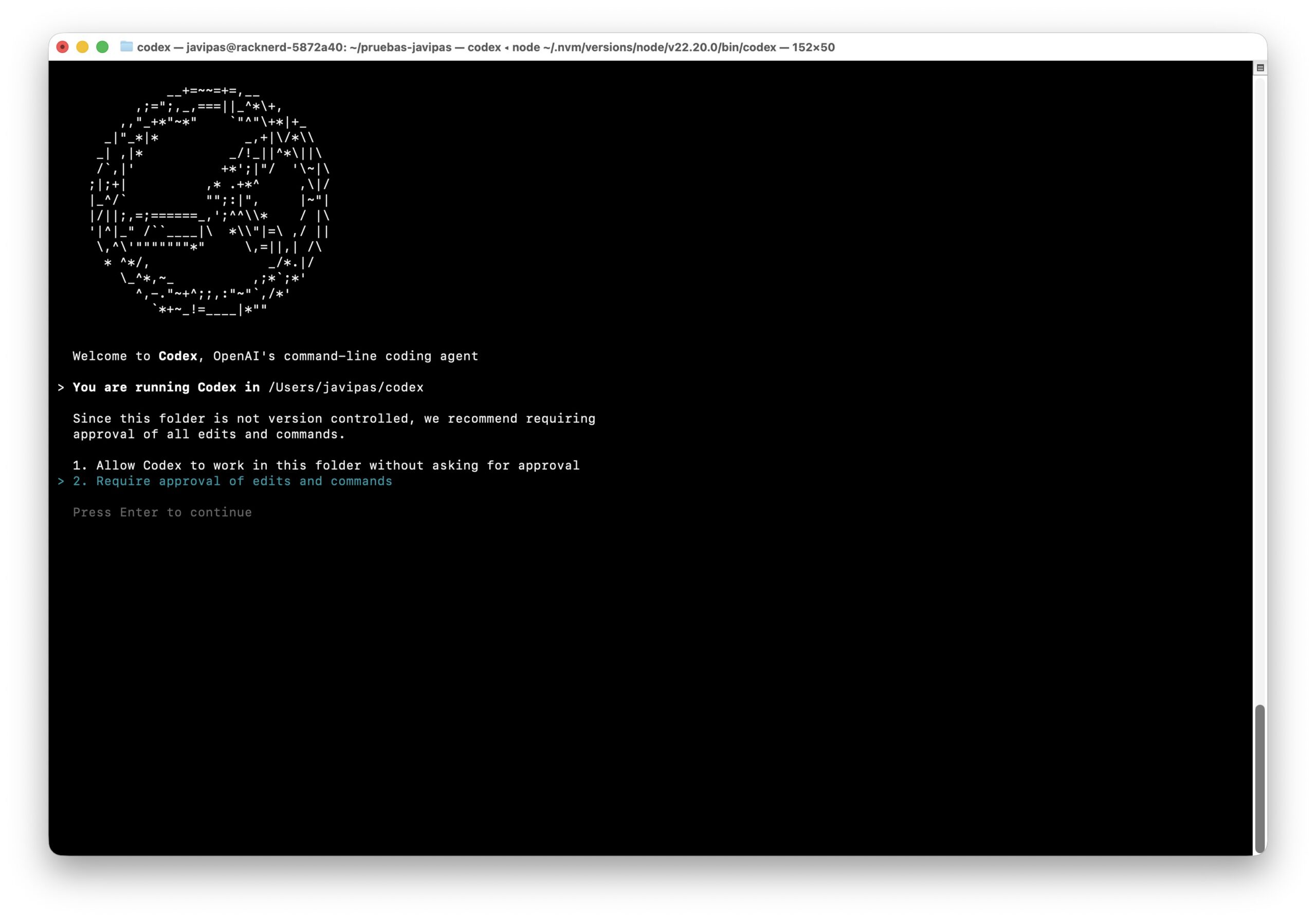 Con GPT-5 el proceso es análogo, pero en lugar de instalar Claude Code, instaláis Codex con npm. Una vez sigáis las instrucciones de la documentación, podréis ejecutar en la terminal el comando "codex", lo que hará que aparezca una curiosa animación ASCII y, a partir de ahí, a chatear normalmente con GPT-5.