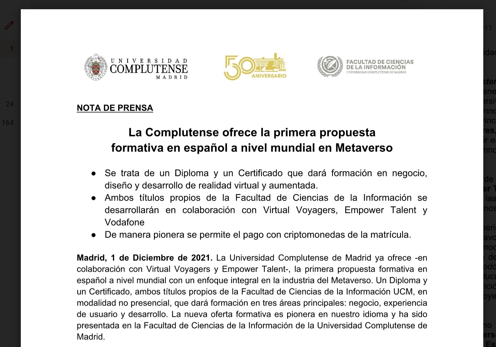 Es muy probable que haya otros vendemotos que se hayan querido sumar ya a este carro para venderte sus metahistorias, pero que lo haga una institución teóricamente seria como la Universidad Complutense me parece peligroso. Sobre todo porque el metaverso que plantea Zuckerberg no existe: es una idea en su cabeza. Es como si te enseñan a convertirte en un máquina de un nuevo deporte sin que se sepa muy bien realmente cómo se va a jugar a ese deporte.
