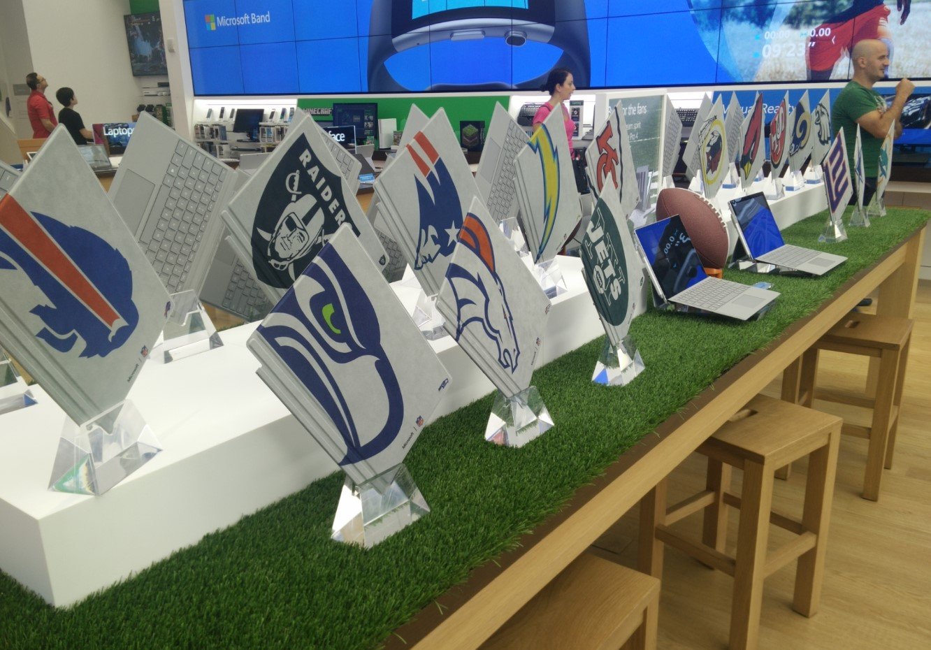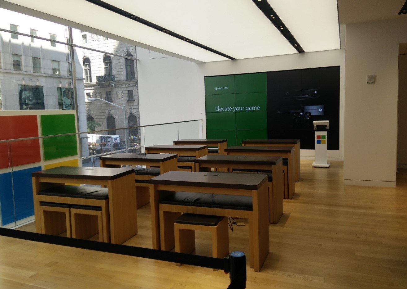 En Microsoft sí que me paré un ratito. La tienda es una copia fantástica de la Apple Store en concepción. El montaje es impresionante, con mucho espacio y tres plantas, la última de ellas patrocinada por Dell (lo habéis adivinado, no subí), pero a todo ese montaje le faltaba un elemento irónico: que no tienen mucho que enseñar. Estaban las Xbox One S con todos sus accesorios, estaban los Surface y sus accesorios -molaban los teclados personalizados para la NFL-, e incluso estaban unas HoloLens en modo exposición.