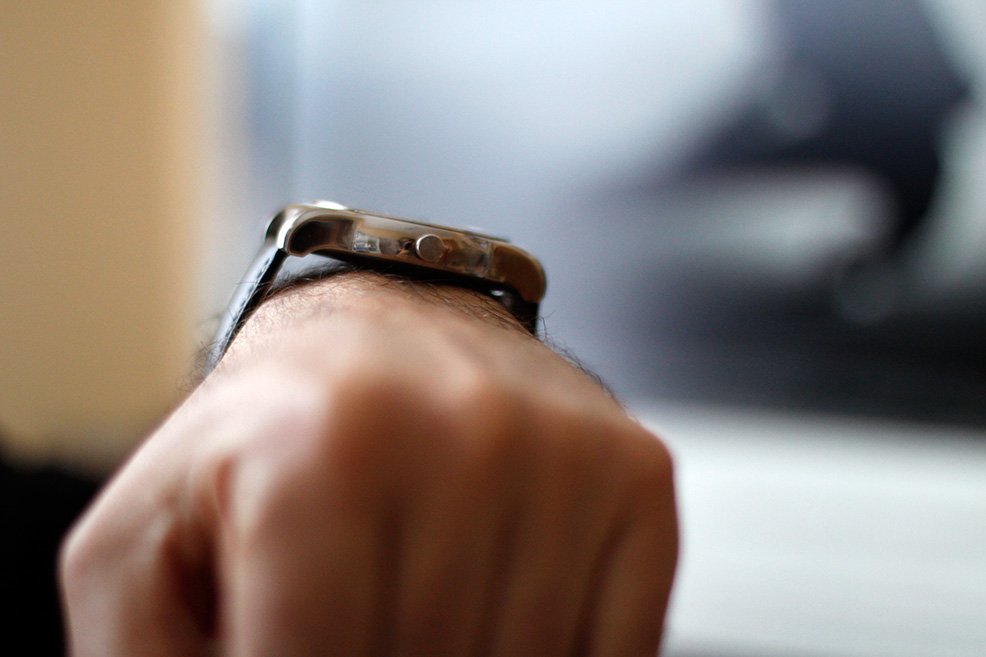 Pues bien: esas impresiones son por el momento (sorprendentemente) positivas. Quizás porque precisamente no me esperaba mucho del reloj, del que había leído que por ejemplo era gigante. A mí me gustan los relojes grandotes, así que estoy encantado. El diseño es simplón pero simpático, y la verdad es que aun trabajando en casa y no acostumbrado a llevar reloj más que cuando salgo llevo con él puesto todo el día y por ahora perfecto. No es algo que creo que vaya a hacer todos los días, pero quería comprobar cómo era tenerlo puesto a todas horas.