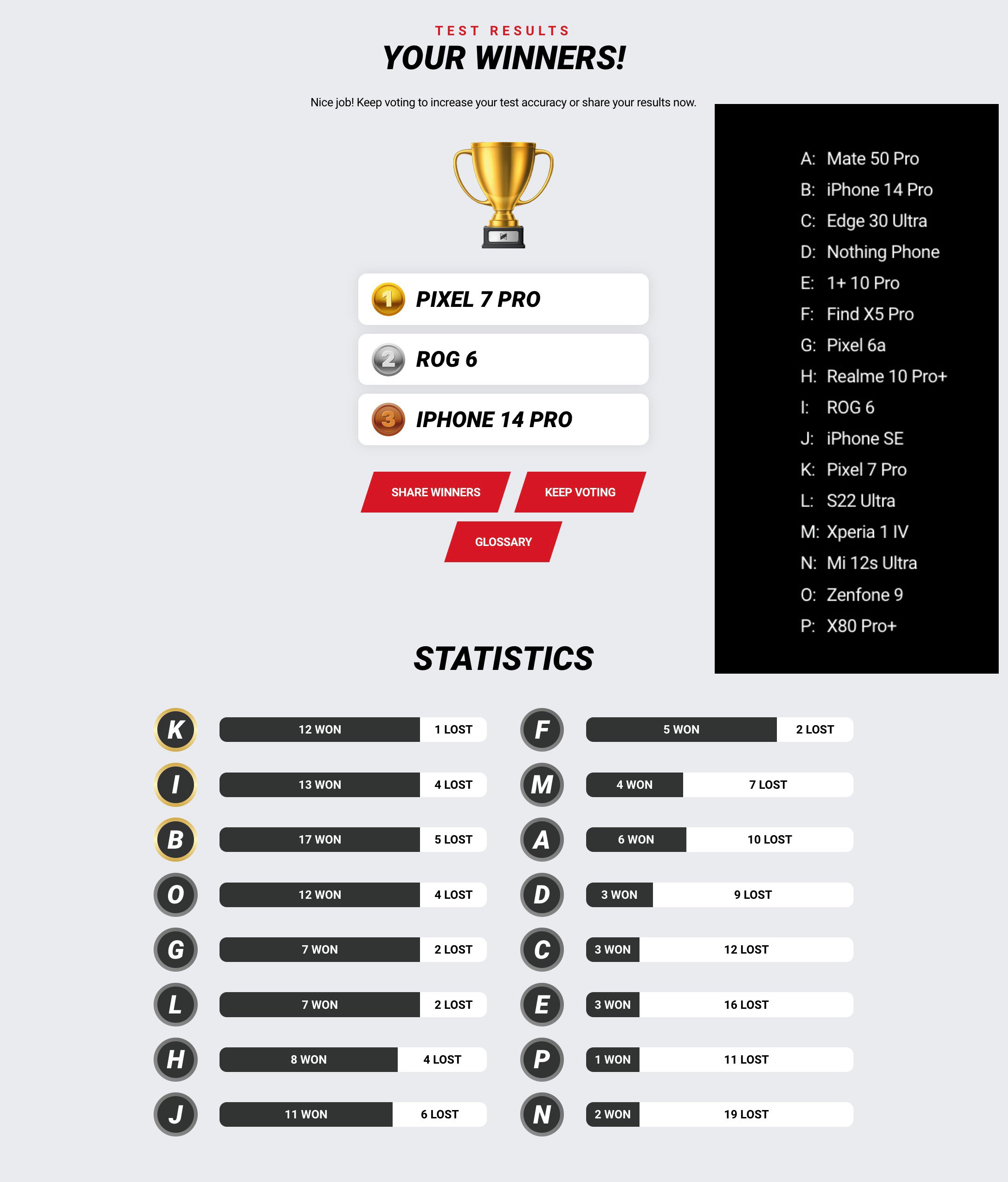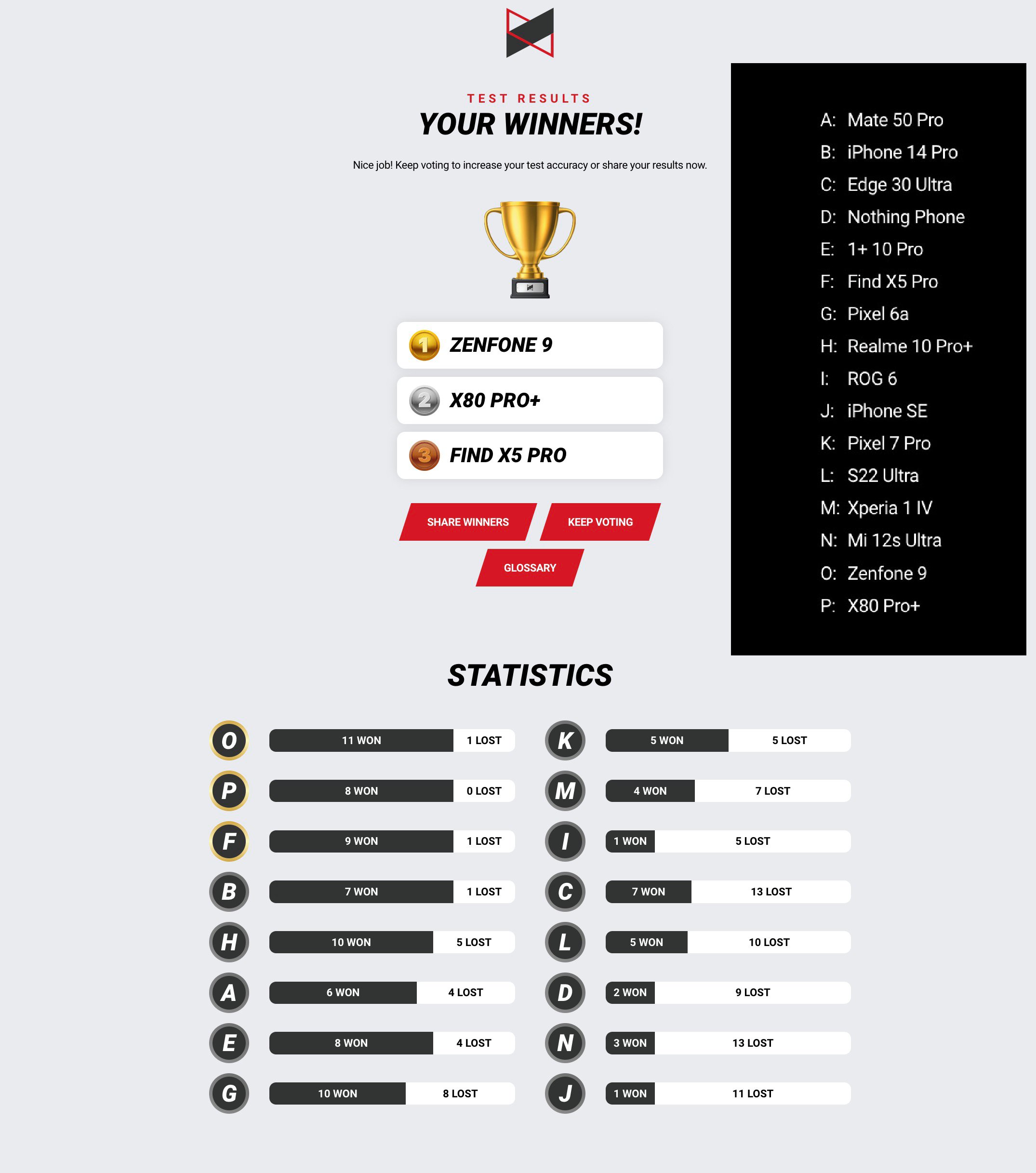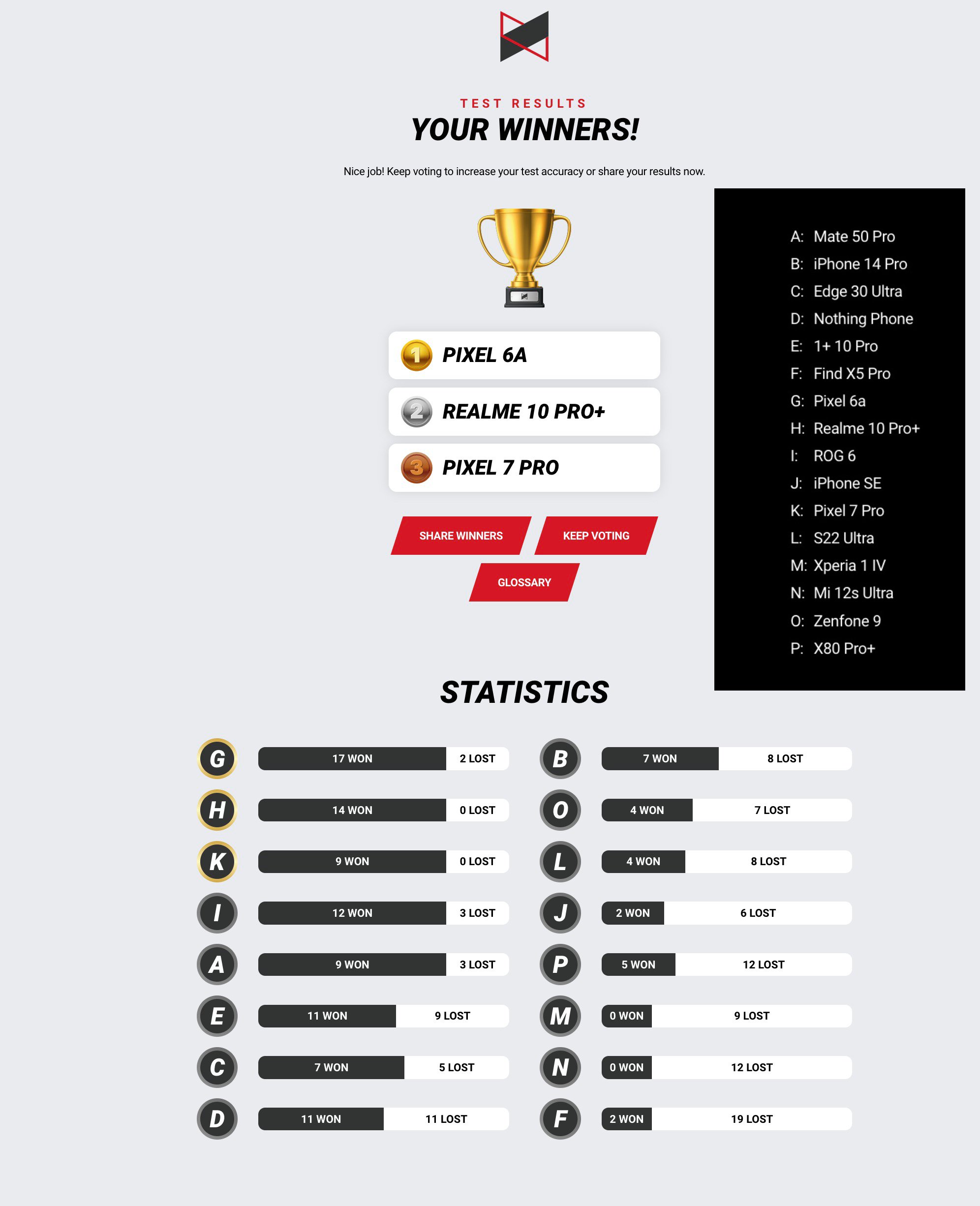 Pero como decía, completar la votación personalmente puede ser muy útil para que sepáis cuál debería ser vuestro próximo móvil si lo que buscáis son fotos que os molen. Yo he dedicado más de media hora a votar (es bastante rollo, pero quería resultados medio fiables) y estos son los resultados en mi caso:
