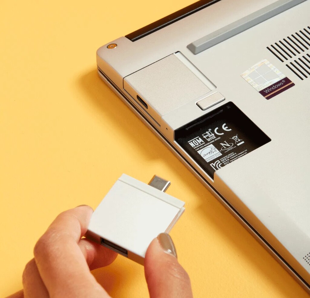 En el equipo mola casi todo, y de hecho te lo venden con pequeños módulos de expansión que te permiten configurar salidas variadas para que tengas puertos USB-C, HDMI o DP a tu alcance, por ejemplo. No solo eso: el adaptador de corriente es de nitruro de galio, lo que lo hace más compacto y potente (y solo se ve en algunos portátiles de gama alta), tenemos una webcam muy decente 1080p, y es posible intercambiar elementos como los teclados e incluso la placa base con el procesador integrado.