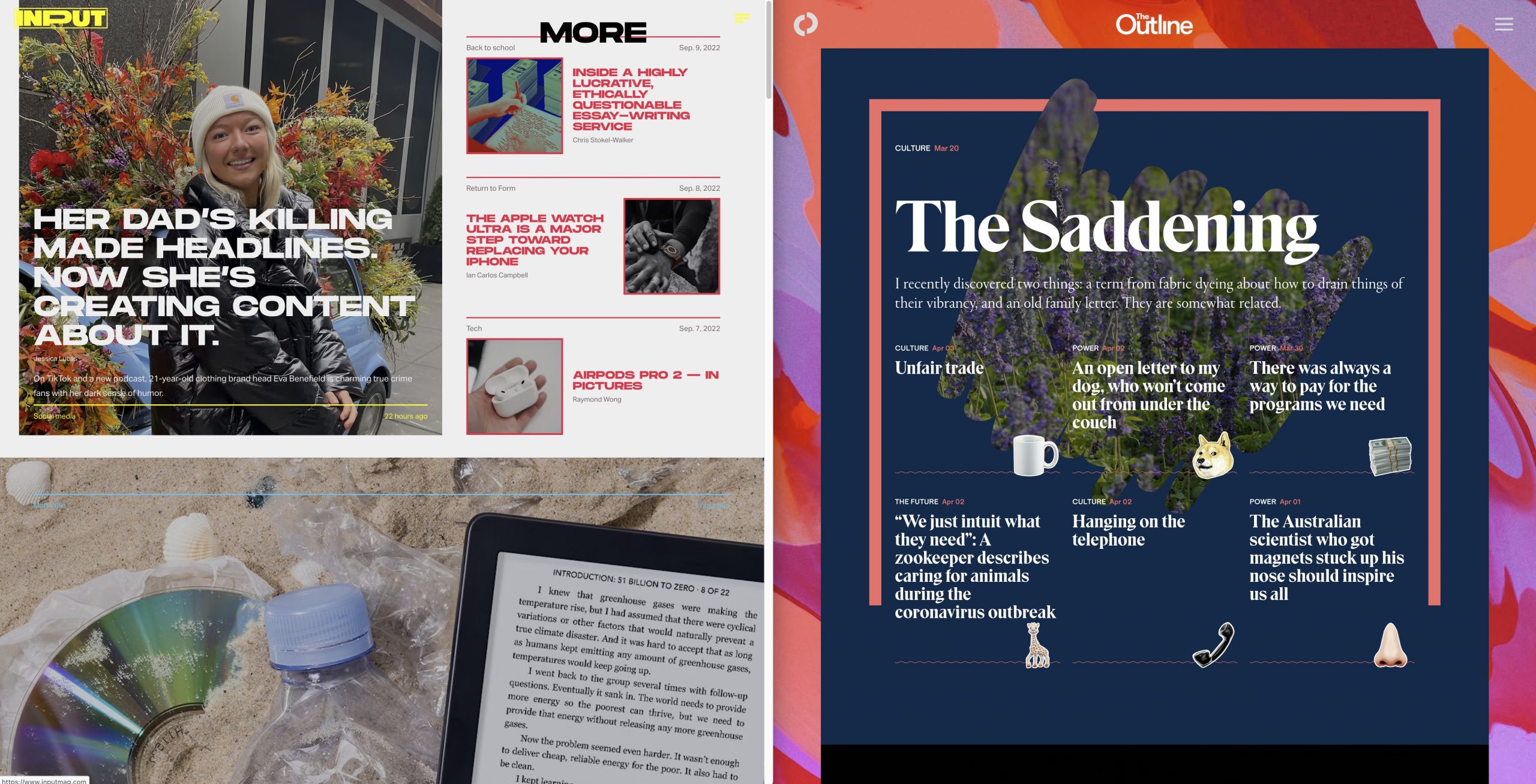 Cuando salió de allí en realidad no salió (no me entero bien de esto) porque Topolsky creó Input Mag, que se estrenó el 16 de diciembre de 2019 y planteaba una apuesta muy similar a la de The Outline. Diseño Snapchat un poco chillón, un poco desconcertante, y contenidos que se salían de los refritos e iban a temas bizarros.