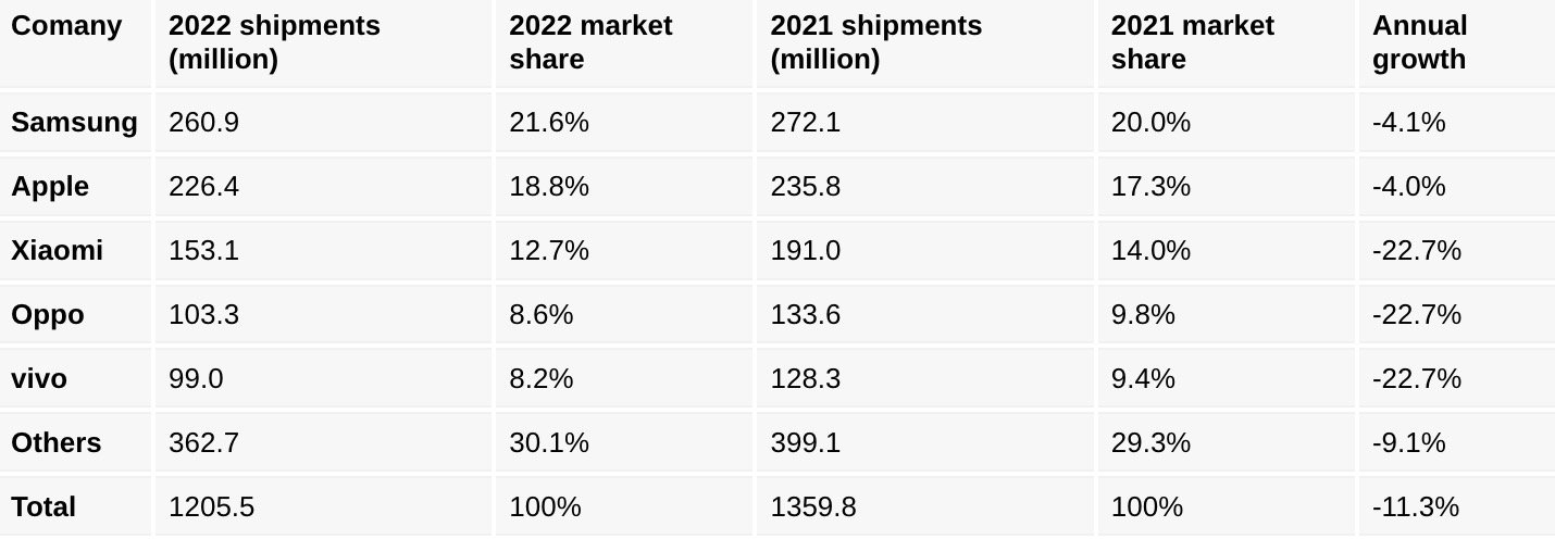 También hablo brevemente de las ventas de smartphones, y la caída es realmente preocupante: un 11,3% menos de unidades vendidas que en 2021, y la cosa no parece que vaya a levantar a corto plazo. Malos tiempos para los Apple, Samsung y Xiaomi del mundo, que están viendo cómo la gente le está sacando un poco de jugo extra a sus móviles ahora que la economía aprieta especialmente.