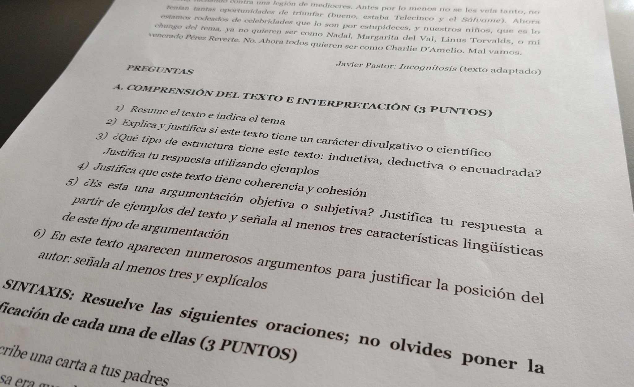 El caso es que Jorge valoraba eso, y es además aquí donde venía la sorpresa. El chico es profesor de 4º de la ESO y me contaba que mi post de "Y los mediocres conquistarán el mundo (o al menos, TikTok)" se había convertido en un examen. Lo utilizó precisamente para hacerles unas preguntas a sus alumnos sobre su comprensión lectora y su interpretación de texto.
