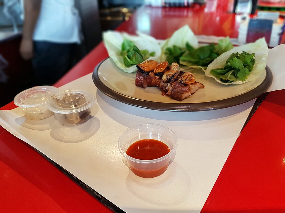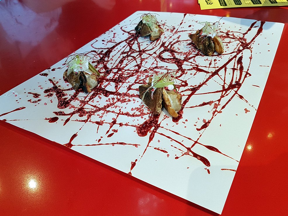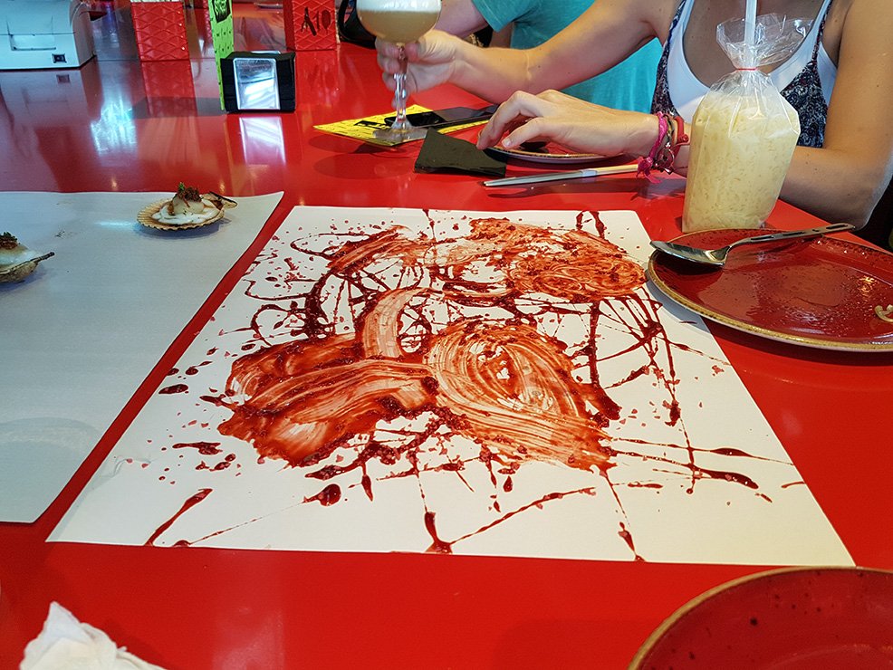 Y los platos no lo hacían, como tampoco la presentación, que iba variando pero que a menudo se limitaba a una cartulina plástica (los famosos "lienzos") sobre la que aparecían esas creaciones en perfecta distribución: en todas ellas, cuatro unidades, con las cuales luego podía haber pasos opcionales: rebañar el hoisin de fresas, envolver el "saam" de panceta en la lechuga, usar cuchara, palillos o manos al tuntún, y un sinfín de reglas no escritas que los camareros recitaban —siempre sin respirar, que es de mala educación— tras anunciar el nombre del plato, que de hecho era más largo que el que ponía en la carta.
