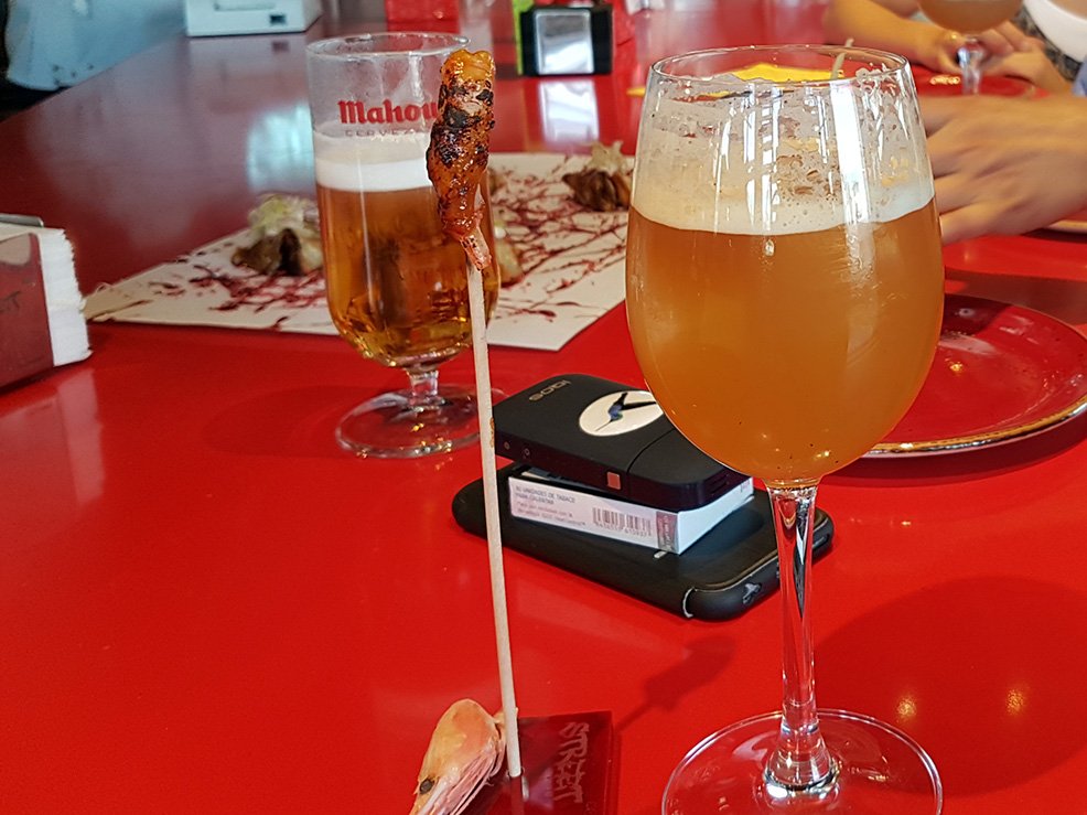 Quizás porque el de Harry era especial. Era un cóctel con menene. La presentación ya era curiosa: una copa de cerveza con algo que parecía una cerveza pero que no era una cerveza (el fin último de la cocina de diseño es engañar a la vista y, si puedes, al resto de sentidos) y que estaba acompañada de un palitroque. En la base, la cabeza de una quisquilla. En el palitroque, ensartada, el resto de la pobre quisquilla, que además estaba bañada en una especie de salsa barbacoa que, por supuesto, no era salsa barbacoa. Harry se quedó estupefacto mirando aquello, sin saber muy bien qué hacer. Sus compañeros de