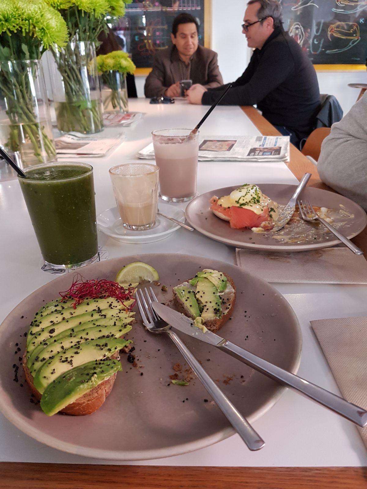 —Bueeeno —dijo acercándose el camarero—pues aquí están los huevos Benedict con salmón, y aquí las tostadas con aguacate.