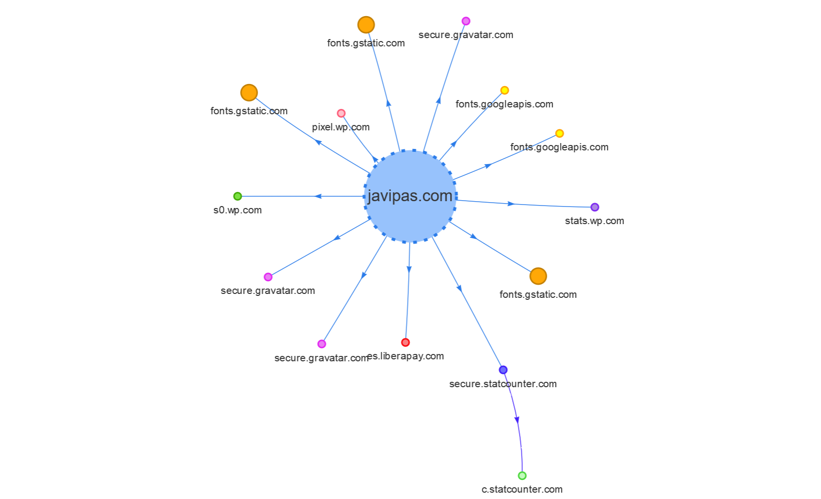 Como veis, las peticiones son poquitas. Gravatar (que no sé si seguir usando tampoco), Statcounter, LiberaPay y algunas peticiones a WordPress y a Google Fonts.