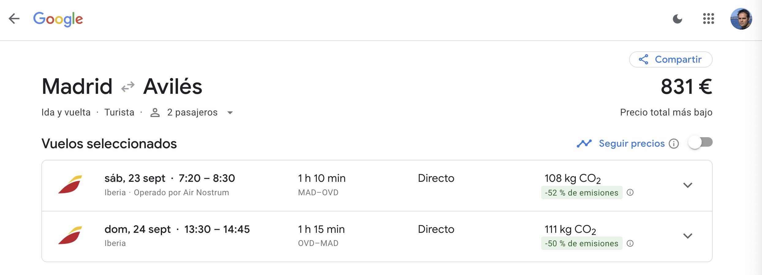 - En BlaBlaCar: decían que la economía colaborativa sería una revolución que nos salvaría a todos, pero como en el resto de los casos, aquí cada uno intenta hacer su particular agosto. Al buscar viajes para dos personas saliendo el sábado por la mañana me salen opciones que solo llegan a Oviedo y cuestan 56 euros. La que había para Gijón estaba a 64, así que con la vuelta el coste sería el doble. Jamás he cogido un BlaBlaCar —supongo que no te recogen en casa ni te dejan en casa, así que una molestia adicional— y tengo curiosidad por probar, pero esto es ridículo. Para eso prefiero ir en mi coche.