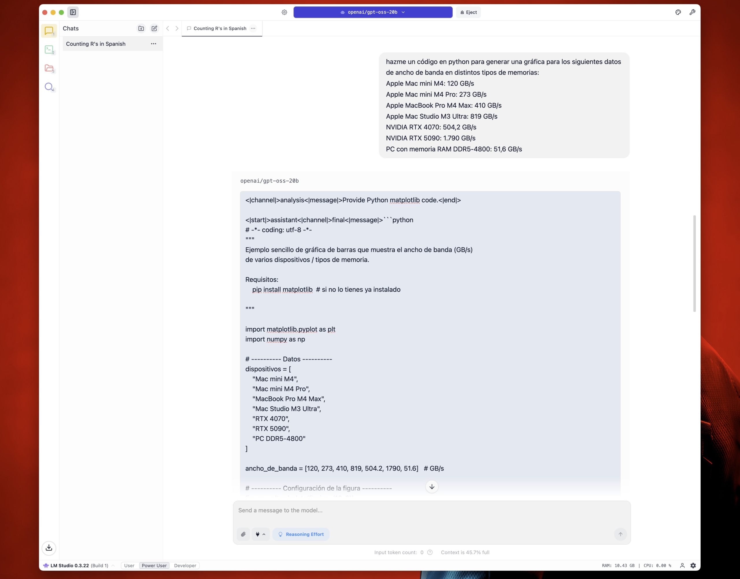 El caso es que tenemos con nosotros gpt-oss-20b, que se puede ejecutar en máquinas con 16 GB de memoria, y gpt-oss-120b, que se puede ejecutar en máquinas con 80 GB de memoria. Yo no puedo probar el segundo —me falta mi workstation de 12.000 euros— pero sí puede probar el primero en mi Mac mini M4 de 16 GB de memoria unificada.
