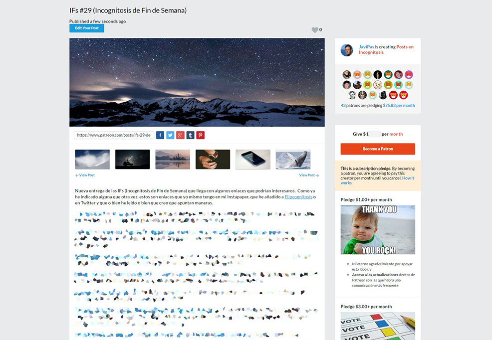 Como sabéis a partir de ahora mantendré de nuevo esta lista de enlaces a lecturas recomendadas, pero lo haré solo a mis patrones. Si queréis acceder a ella la tenéis por aquí, pero solo podréis ver ese contenido si sois patrones -podéis apuntaros aquí-, así que ¡ya sabéis!