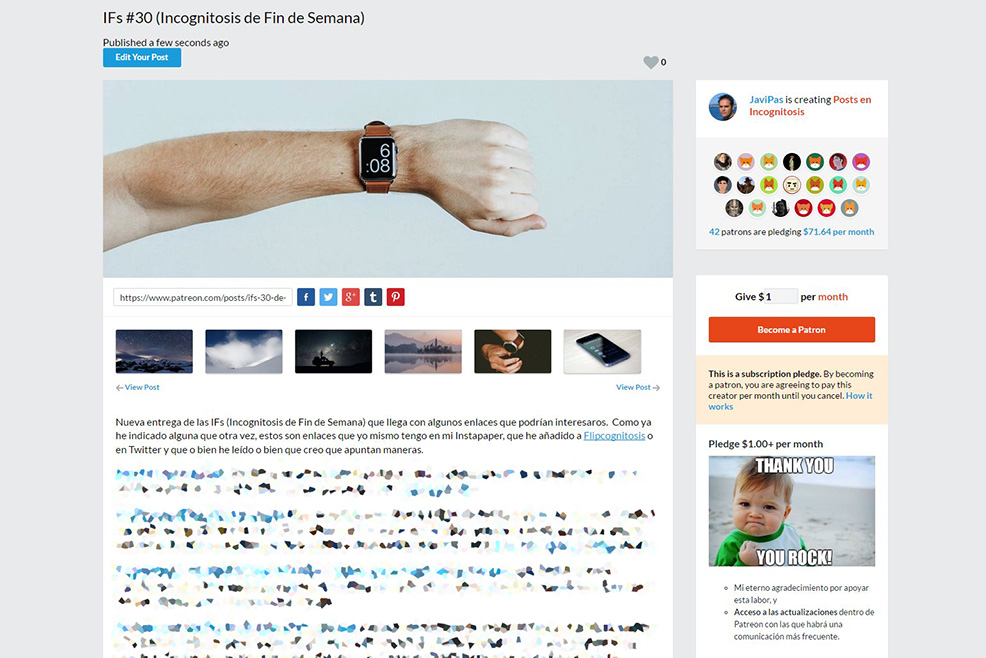 Como sabéis a partir de ahora mantendré de nuevo esta lista de enlaces a lecturas recomendadas, pero lo haré solo a mis patrones. Si queréis acceder a ella la tenéis por aquí, pero solo podréis ver ese contenido si sois patrones -podéis apuntaros aquí-, así que ¡ya sabéis!