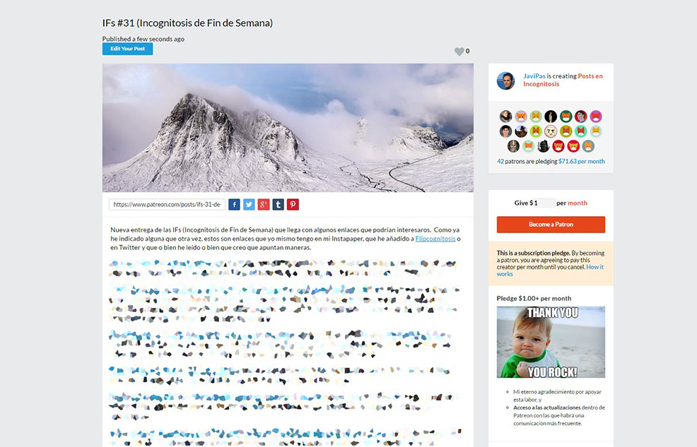 Como sabéis a partir de ahora mantendré de nuevo esta lista de enlaces a lecturas recomendadas, pero lo haré solo a mis patrones. Si queréis acceder a ella la tenéis por aquí, pero solo podréis ver ese contenido si sois patrones -podéis apuntaros aquí-, así que ¡ya sabéis!