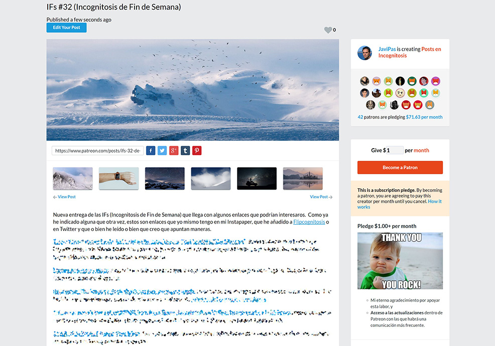 Como sabéis a partir de ahora mantendré de nuevo esta lista de enlaces a lecturas recomendadas, pero lo haré solo a mis patrones. Si queréis acceder a ella la tenéis por aquí, pero solo podréis ver ese contenido si sois patrones -podéis apuntaros aquí-, así que ¡ya sabéis!