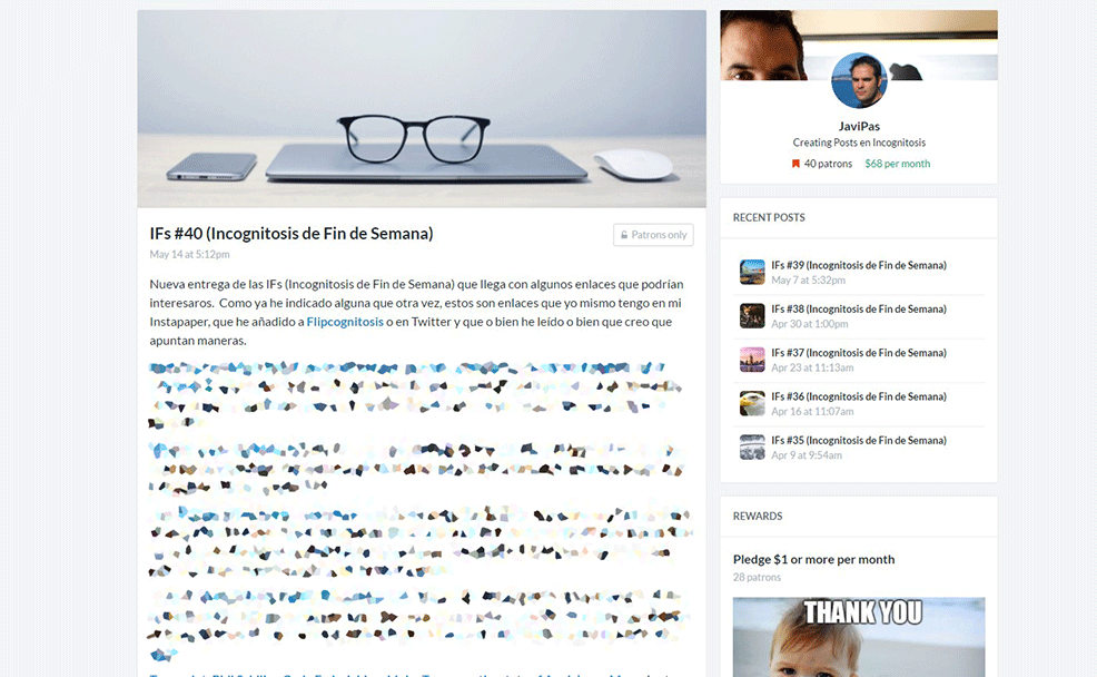 Como sabéis a partir de ahora mantendré de nuevo esta lista de enlaces a lecturas recomendadas, pero lo haré solo a mis patrones. Si queréis acceder a ella la tenéis por aquí, pero solo podréis ver ese contenido si sois patrones -podéis apuntaros aquí-, así que ¡ya sabéis!