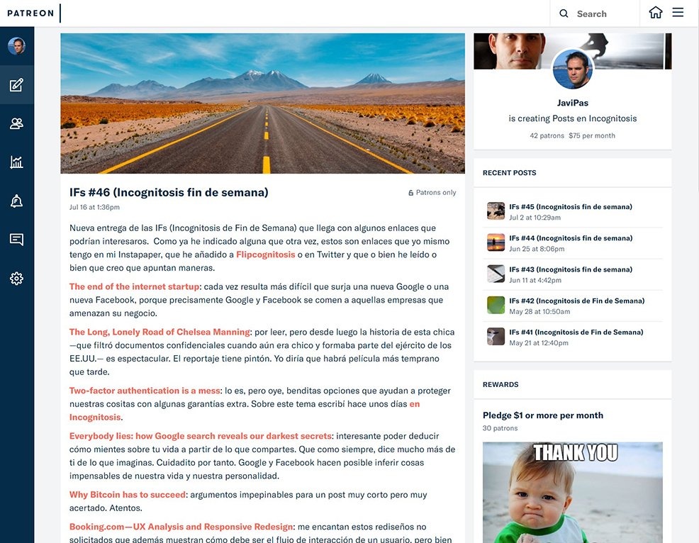 Como sabéis a partir de ahora mantendré de nuevo esta lista de enlaces a lecturas recomendadas, pero lo haré solo a mis patrones. Si queréis acceder a ella la tenéis por aquí, pero solo podréis ver ese contenido si sois patrones -podéis apuntaros aquí-, así que ¡ya sabéis!