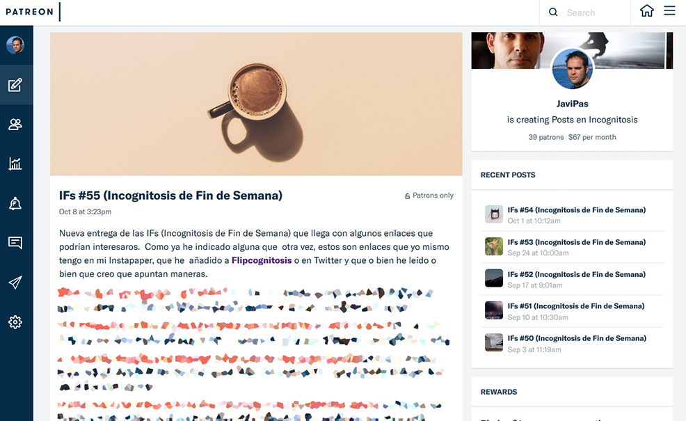 Como sabéis a partir de ahora mantendré de nuevo esta lista de enlaces a lecturas recomendadas, pero lo haré solo a mis patrones. Si queréis acceder a ella la tenéis por aquí, pero solo podréis ver ese contenido si sois patrones -podéis apuntaros aquí-, así que ¡ya sabéis!