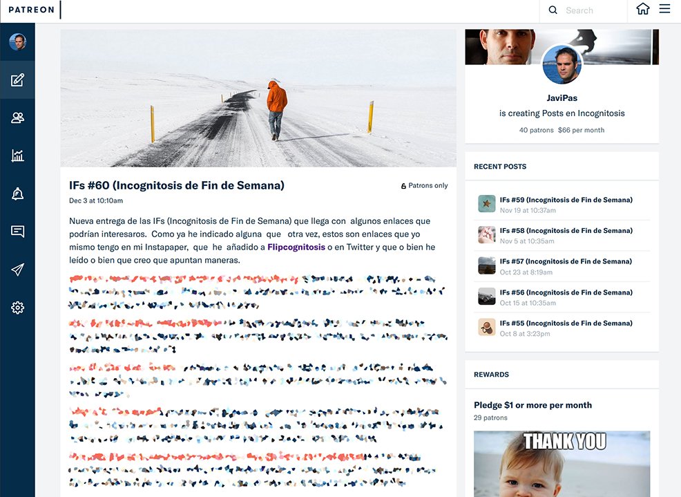 Como sabéis a partir de ahora mantendré de nuevo esta lista de enlaces a lecturas recomendadas, pero lo haré solo a mis patrones. Si queréis acceder a ella la tenéis por aquí, pero solo podréis ver ese contenido si sois patrones -podéis apuntaros aquí-, así que ¡ya sabéis!