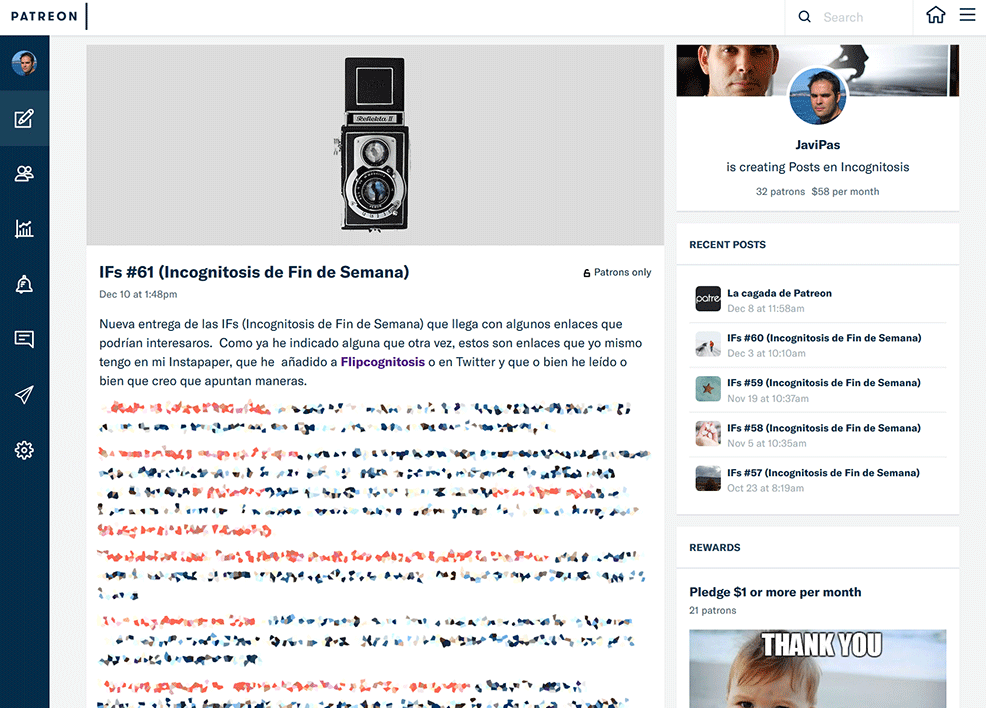 Como sabéis a partir de ahora mantendré de nuevo esta lista de enlaces a lecturas recomendadas, pero lo haré solo a mis patrones. Si queréis acceder a ella la tenéis por aquí, pero solo podréis ver ese contenido si sois patrones -podéis apuntaros aquí-, así que ¡ya sabéis!