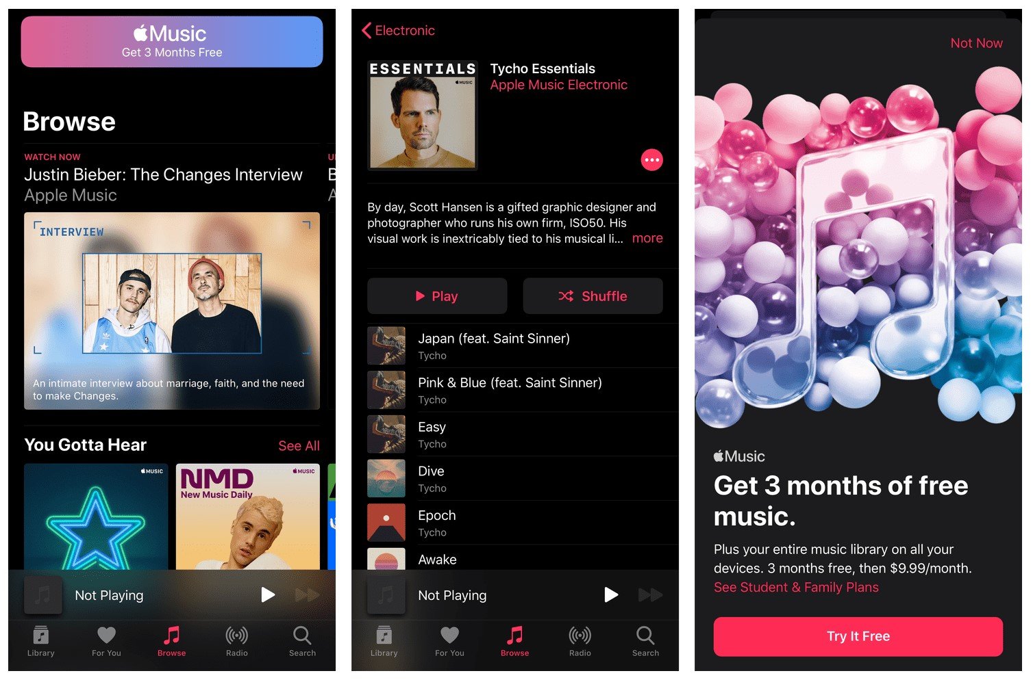 Eso parece ocurrir en muchas áreas del sistema operativo móvil de los de Cupertino. Abres la aplicación Música y todo te empuja a crear una cuenta en Apple Music. Puedes meter tu propia música, claro, pero iOS te recomienda una y otra vez que te suscribas a su particular Spotify.