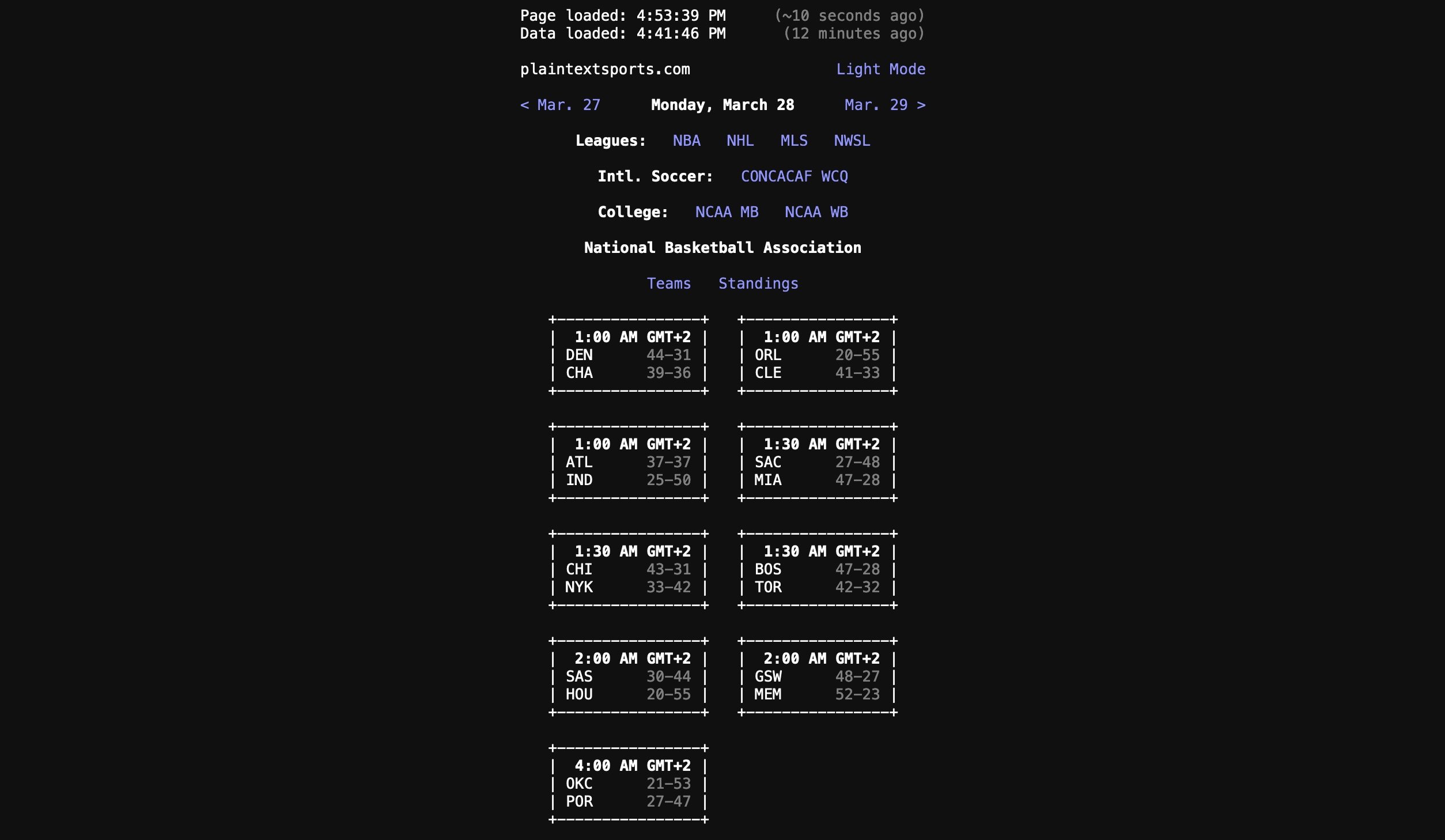 En Protocol publicaban estos días una reflexión titulada 'The plain-text internet is coming'. David Pierce, ex-theverge, comentaba el caso de éxito de Plain Text Sports, una web con marcadores de encuentros deportivos en EEUU que tiene una particularidad: está creada únicamente con texto. El aspecto en modo oscuro es este: