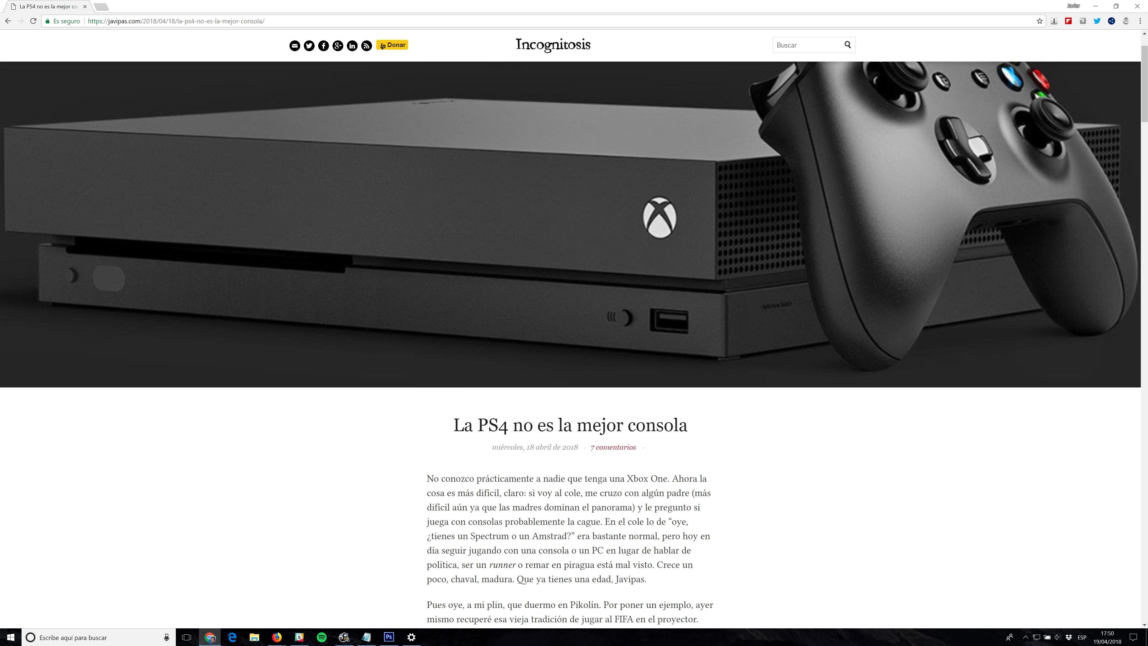 - Pestañas: por alguna extraña razón también se queja de las pestañas, que según él se crearon cuando las pantallas predominantes eran 4:3. No sé cuándo empezó a usarlas él, pero yo las empecé a usar en un navegador hará una década, y por entonces las pantallas 16:9 ya habían ganado la partida. El caso es que eso resta aún más espacio vertical al navegador, que ya tiene dos barras (direcciones y marcadores) quitando espacio. Para mí el compromiso es adecuado, y tampoco lo veo tan grave, pero en fin.