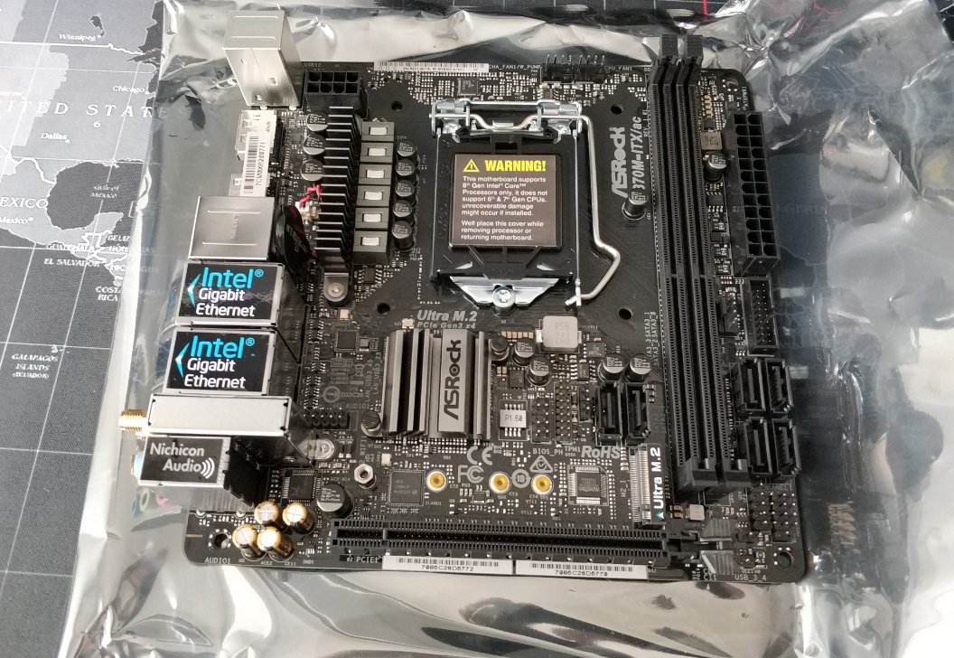 - ASRock Z370M-ITX/ac (136,90 euros): de las opciones compatibles con Hackintosh, la de la placa base es la más rollo. Aunque es posible tirar con placas para micros AMD, lo de elegir Intel facilita bastante la vida. Y como la vida ya es bastante complicada por sí misma, me fui a la opción Intel, claro. Esta estaba bastante recomendada por ahí y con ese formato me permitía ahorrar espacio para elegir caja. De hecho elegir una compacta era la idea inicial. Se quedó en eso.