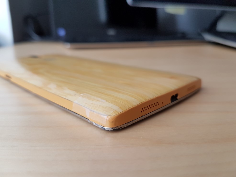 Salvo por ese pequeño inconveniente y una rajita en la carcasa de bambú que yo apañé con un poquito de celo (lo sé, fatal, tenéis la original, Sandstone como nueva), el móvil funciona sin problemas como se ve en el vídeo. Lo hace con una CyanogenMod 13.1.2 (Android 6.0.1) que cumple estupendamente y que va fluida y es especialmente eficiente en batería.