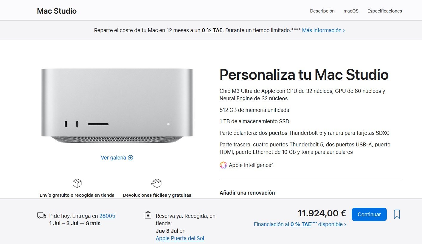 Pero todo eso da igual, porque no pienso gastarme 12.000 euros en un Mac Studio M3 Ultra con 512 GB de RAM. Estuve incluso mirando los M2 Ultra, pero no salen a cuenta —siguen siendo carísimos porque la gente se ha dado cuenta de que molan para IA, y lo de gastarme 2.000 euros en una máquina "pobre" en ancho de banda tampoco me llama demasiado la atención. Así que probablemente no me gaste nada durante una buena temporada y espere a ver si el mercado hace lo que tiene que hacer: abaratarse para que los pobres mortales podamos hacer este tipo de cosas sin tener que hipotecarnos.