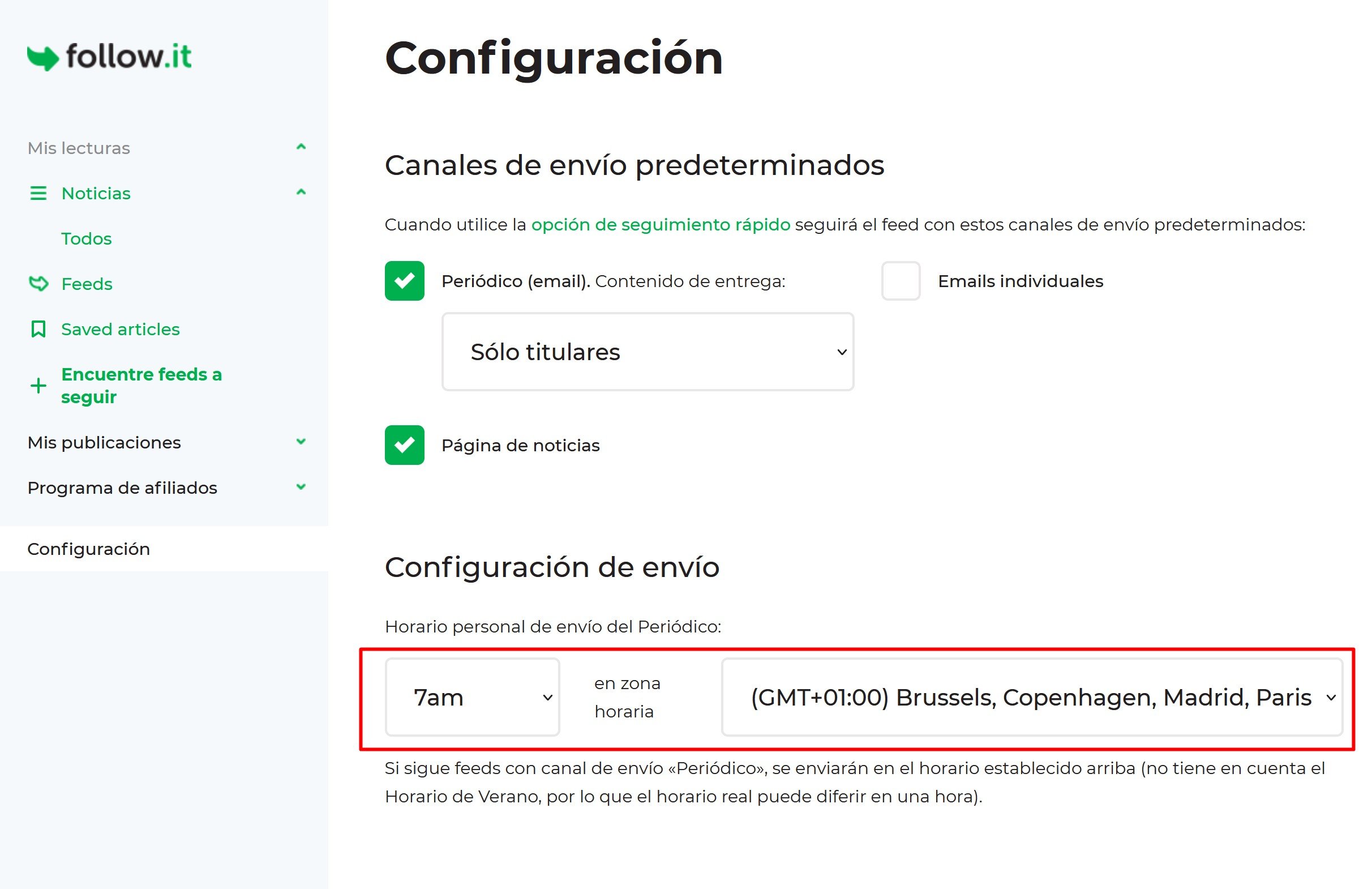 Si entráis en Follow.it se pueden configurar pocas cosas, pero una de ellas es la hora a la que queréis recibir los mensajes. Aquí os aconsejaría poner las 7 AM por ej y además tened en cuenta que hay que poner la región horaria correcta (la que corresponda a vuestra zona, claro).
