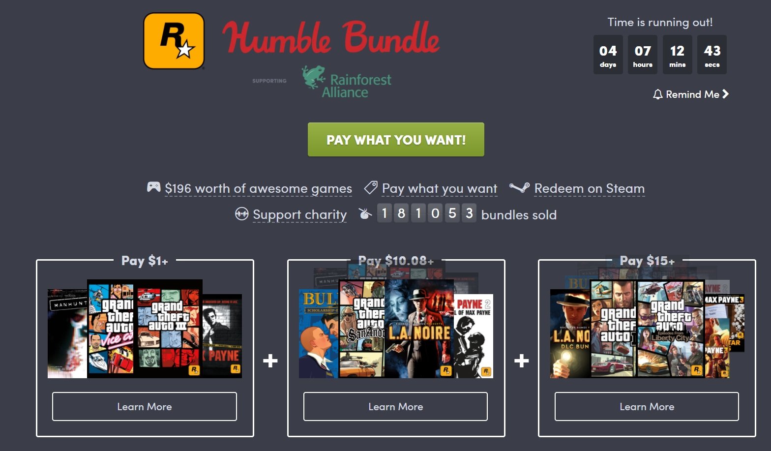 - Humble Bundle Rockstar: un nuevo superpack de juegos en el que cuanto más pagas, más obtienes. Por 12 euros tienes todo, incluyendo Manhunt, GTA I, GTA III, GTA IV, Max Payne 2 y 3 o LA Noire con todos los DLC.