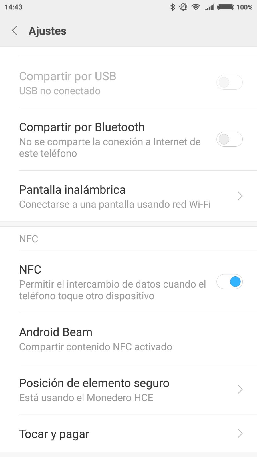 Pero es que resulta que era una de esas opciones la que tenía que estar activada para que todo fuera como la seda. En los foros de MIUI me encontré con que lo que había que hacer era seleccionar "Usar Monedero HCE", una opción que activa la llamada Host Card Emulation de la que no había oído hablar. También aconsejaban seleccionar Android Pay como sistema de pago de forma permanente, así que tras seleccionar esa última opción, lo tenía todo preparado.