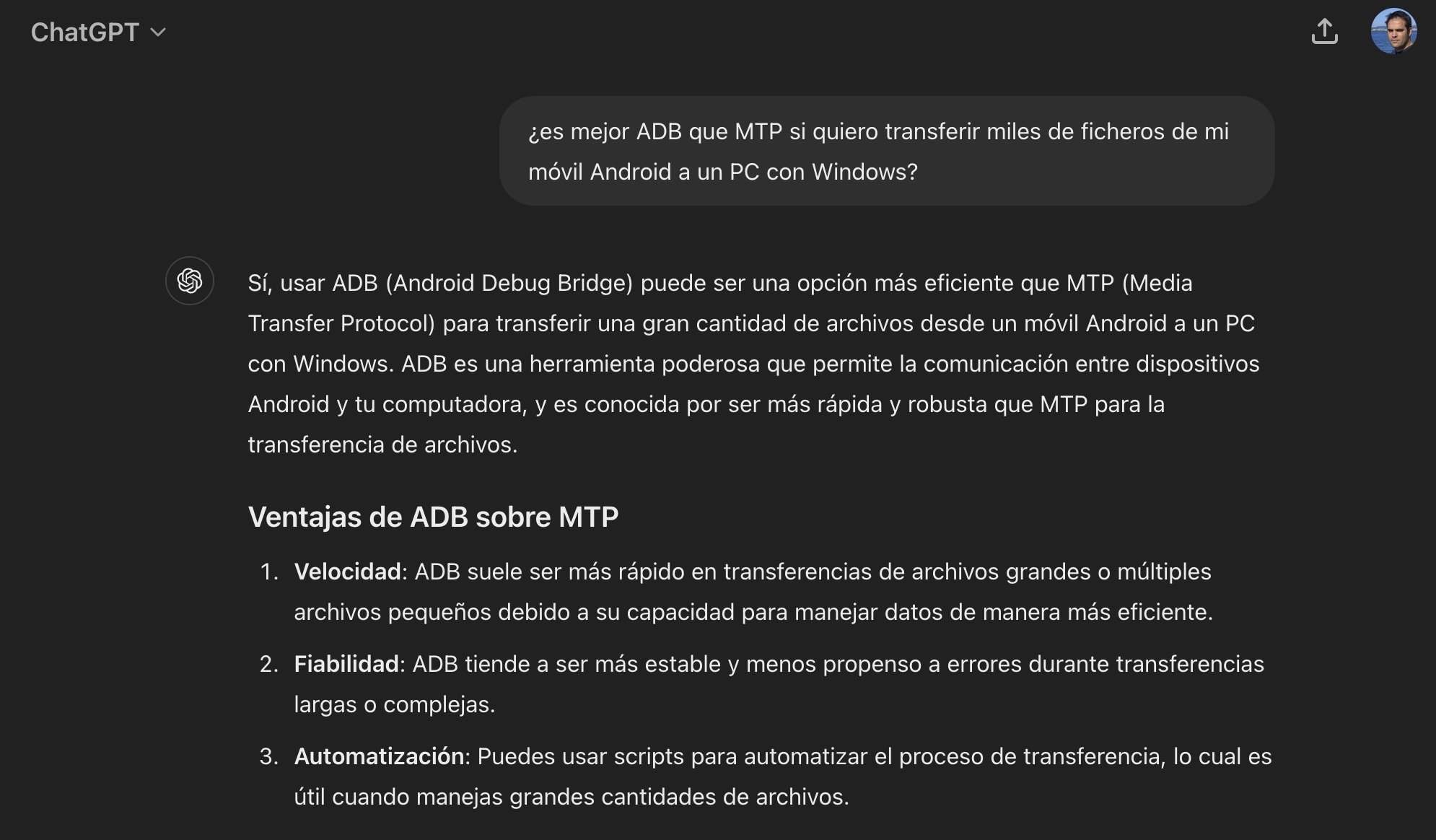 Qué gustirrinín. Y por el camino, algo que he aprendido. Si necesitáis transferir muchos ficheros, atentos, que ADB va (al menos) dos veces más rápido.