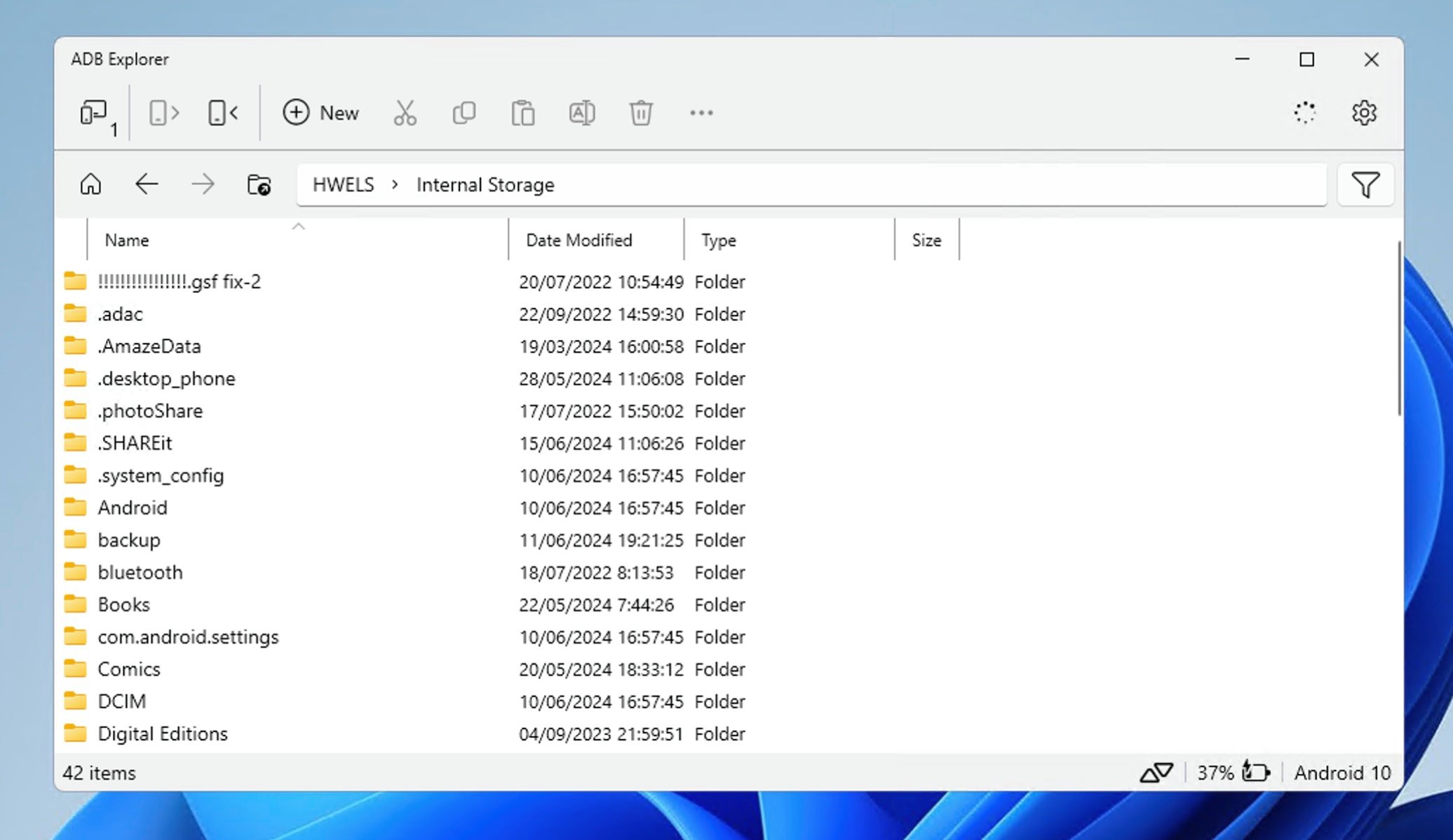 El funcionamiento de la aplicación es sencillo. Hay que tener la "Depuración USB" activada en el móvil, por supuesto, y confirmar que quieres conectar el móvil con ADB al PC cuando lo conectas con cable y aparece el mensaje, pero a partir de ahí, todo es muy fácil... aunque no idéntico al explorador de Windows.