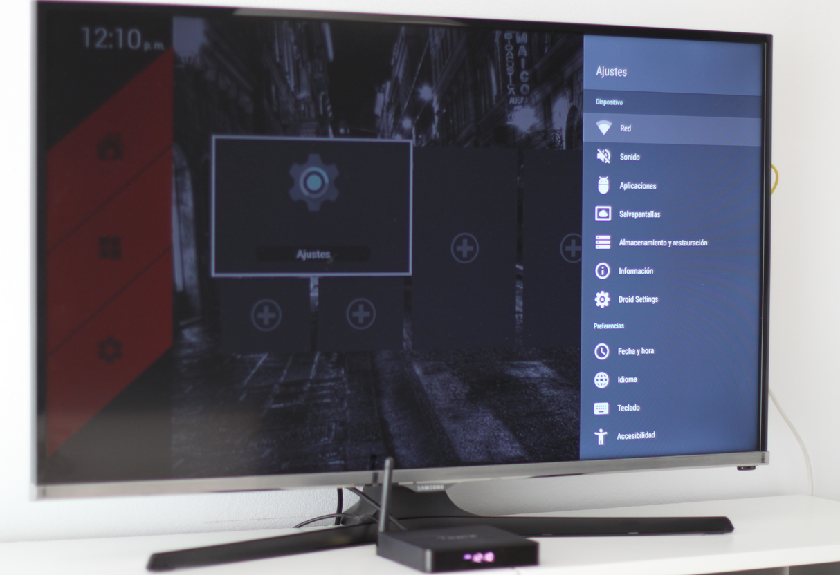 A partir de ese momento el dispositivo está preparado para funcionar sin problemas. De primeras, buenas sensaciones: la interfaz es mucho más limpia que la del BeeLink GS1 que probé, por ejemplo. No parece un Android en casi nada, y aquí el fabricante ha hecho un buen trabajo con ese escritorio inicial que se parece más al de una Smart TV, con grandes accesos a las principales aplicaciones y la posibilidad de instalar otras nuevas a través de Google Play, que está preinstalada.