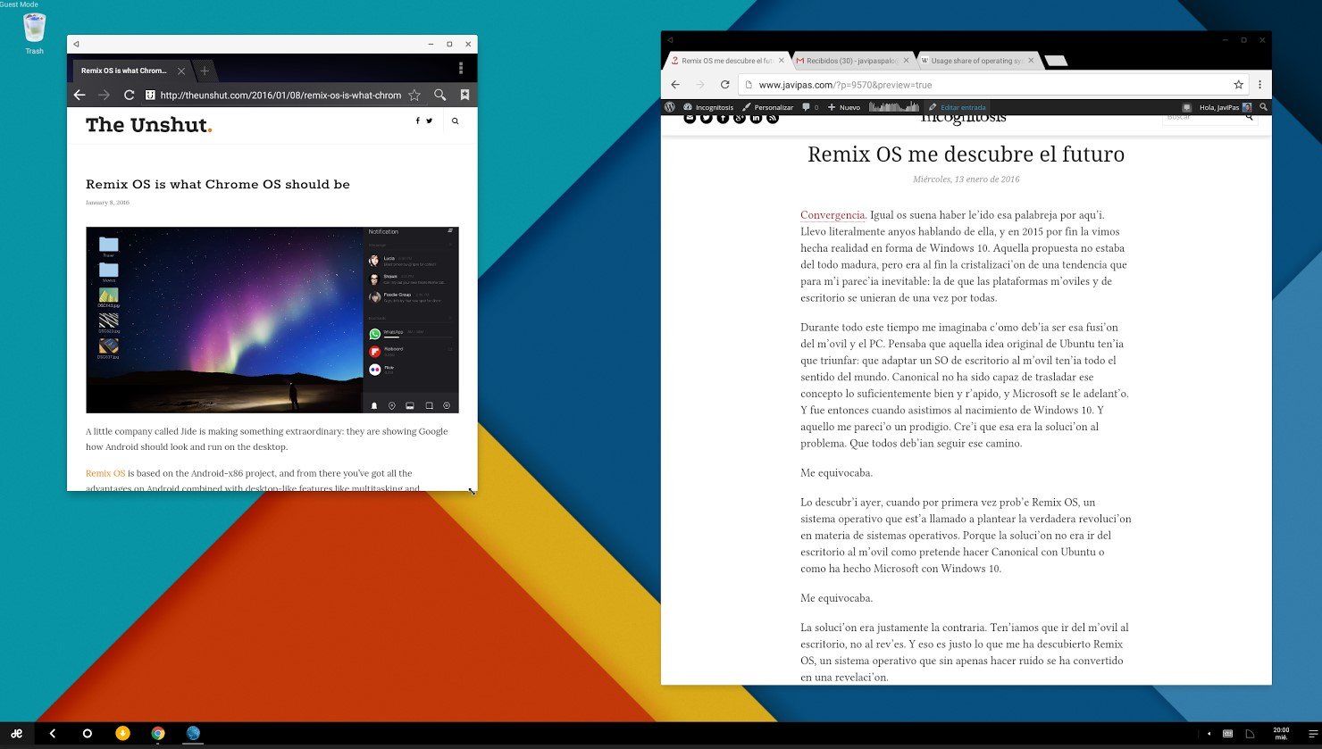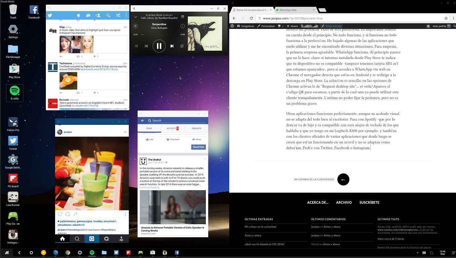 Toda esta diatriba está escrita completamente en Remix OS, aunque he tenido que editar el texto final para apañar el tema de las las tildes y las eñes en una sesión de Windows 10. Salvo por eso mi impresión es inmejorable. Increíble para tratarse de un sistema operativo en estado alpha.