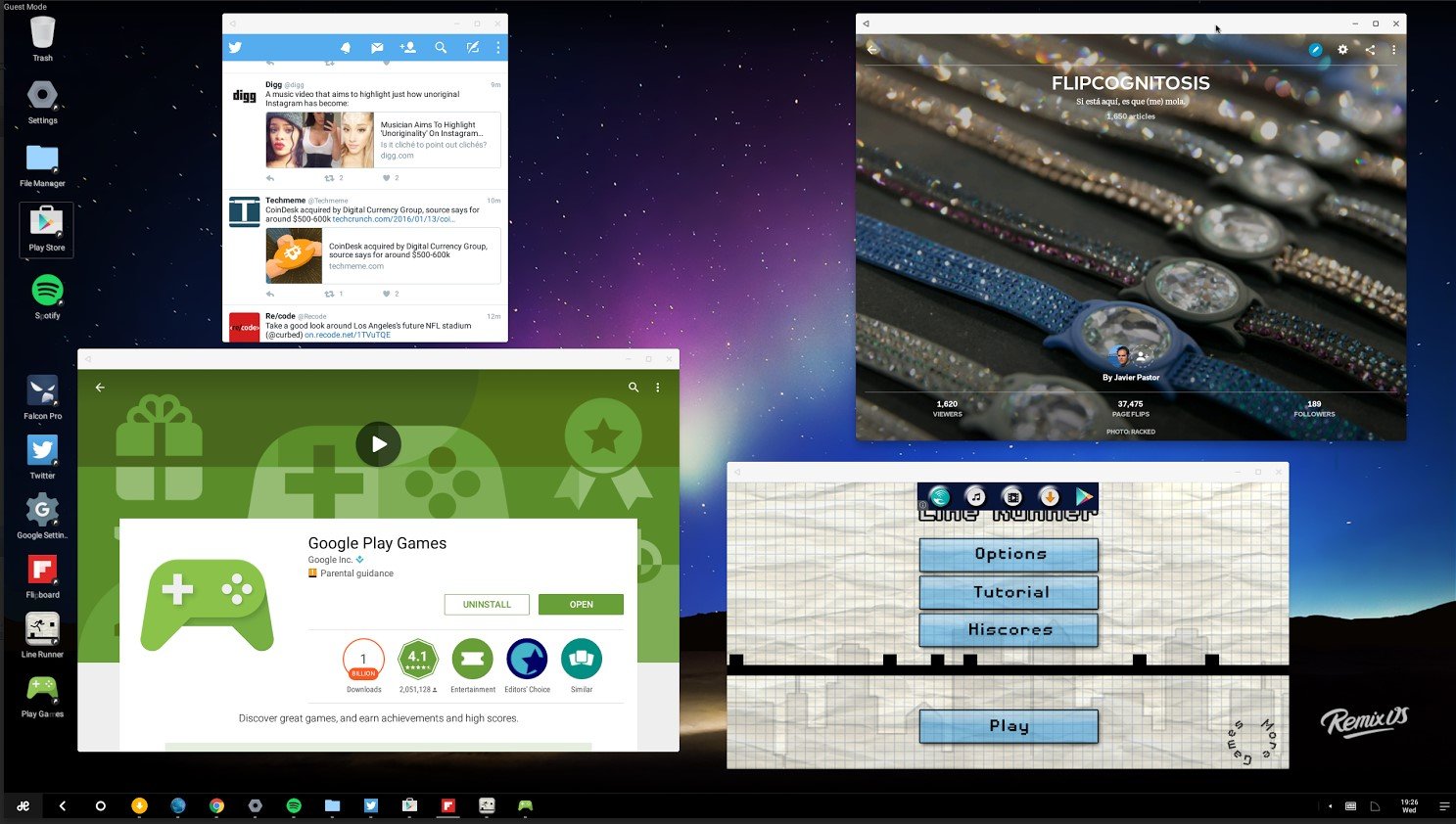 Otra opcion es, por supuesto, instalar Remix OS en arranque dual (o multiboot) con tutoriales como este o este, algo que es para gente con ganas de vivir la vida un poco más peligrosamente porque el sistema aún está un poco verde como para poder ser un sistema de producción. Aún así ahí está la opción para quien quiera aprovecharla, y desde luego es una buena forma de demostrar que se puede comportar bien en el día a día. Aún así es más que probable que futuras versiones ofrezcan esa posibilidad de ser instaladas directamente como si de distribuciones Linux se tratara, así que al menos en este caso yo he preferido darle tiempo al tiempo.