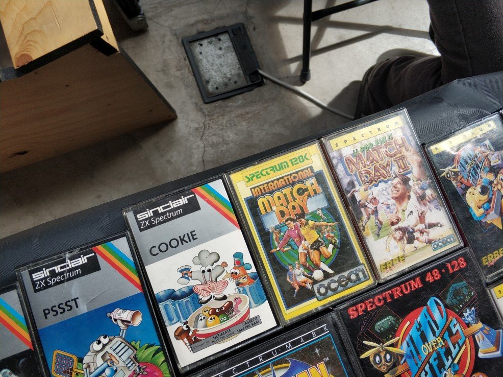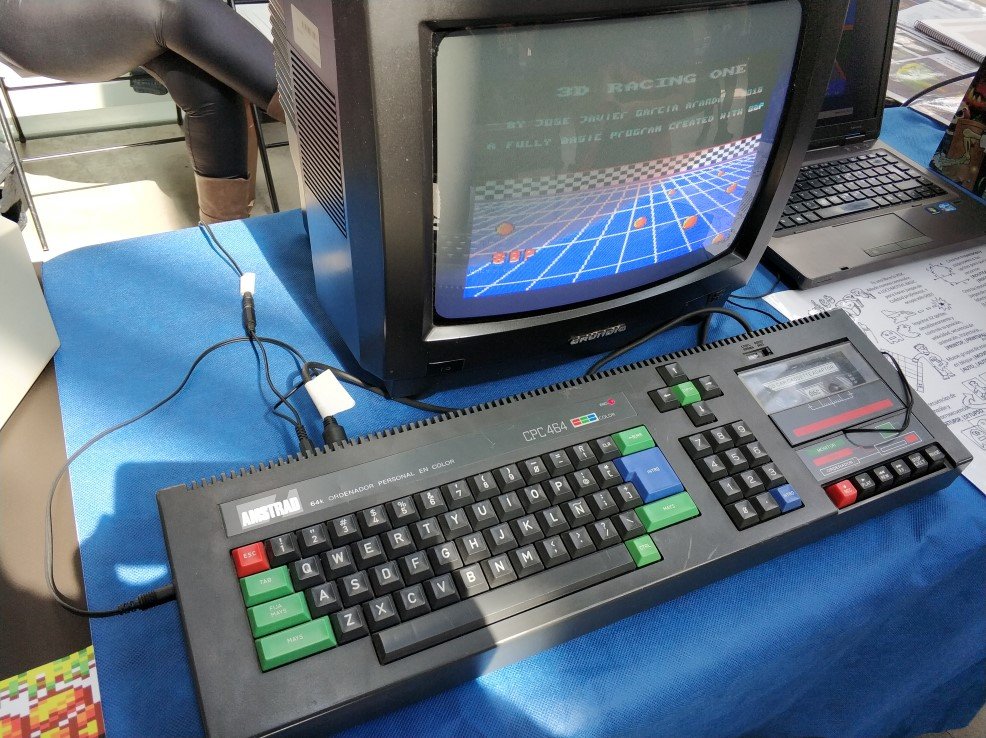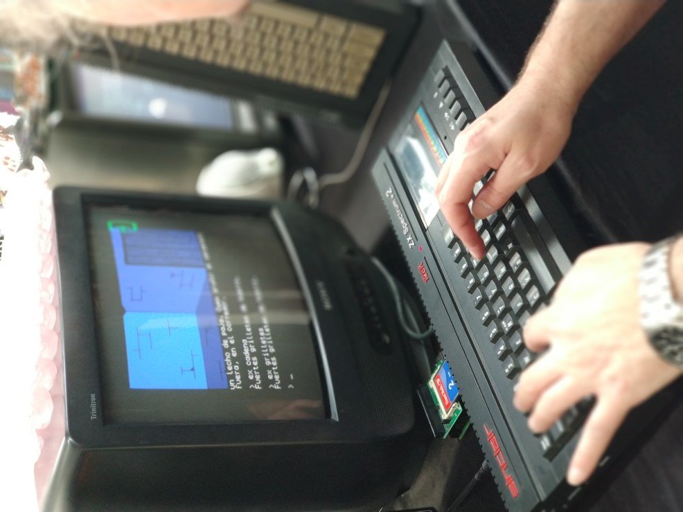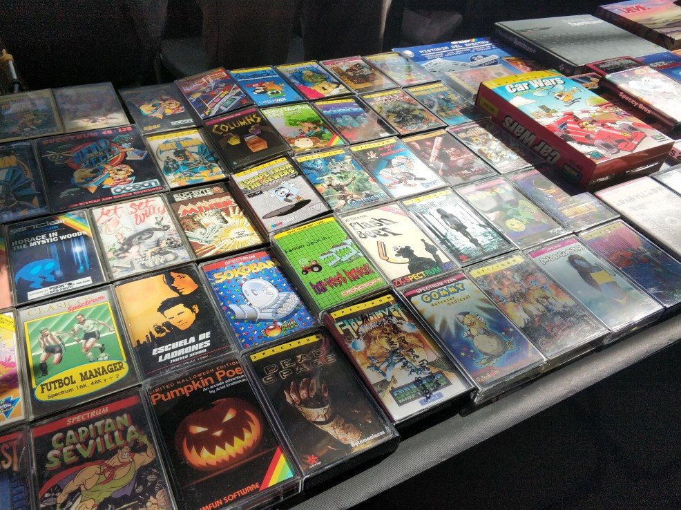 De repente parecía como si ya no molara tanto lo antiguo. Por ahí había un grupo de usuarios mostrando un entorno de ventanas para el Spectrum —me entero ahora de proyectos como SymbOS—, algo que como curiosidad estaba bien pero que una vez más traicionaba un poco el espíritu original. Yo pretendía ver cintas, pitidos y colorines de carga en pantalla y en lugar de eso me encontré con adaptadores (con tarjetas Micro SD para ROMs) conectados a las viejas máquinas. Trampas a la memoria. Trampas a la nostalgia, en cierto modo. Tampoco me voy a poner talibán: me hubiera molado ver algún cassette pirulando, pero aquellos tiempos de carga y el riesgo de que el juego no se cargaran eran una pesadilla. Aquello eran tiempos pasados, pero desde luego no mejores.