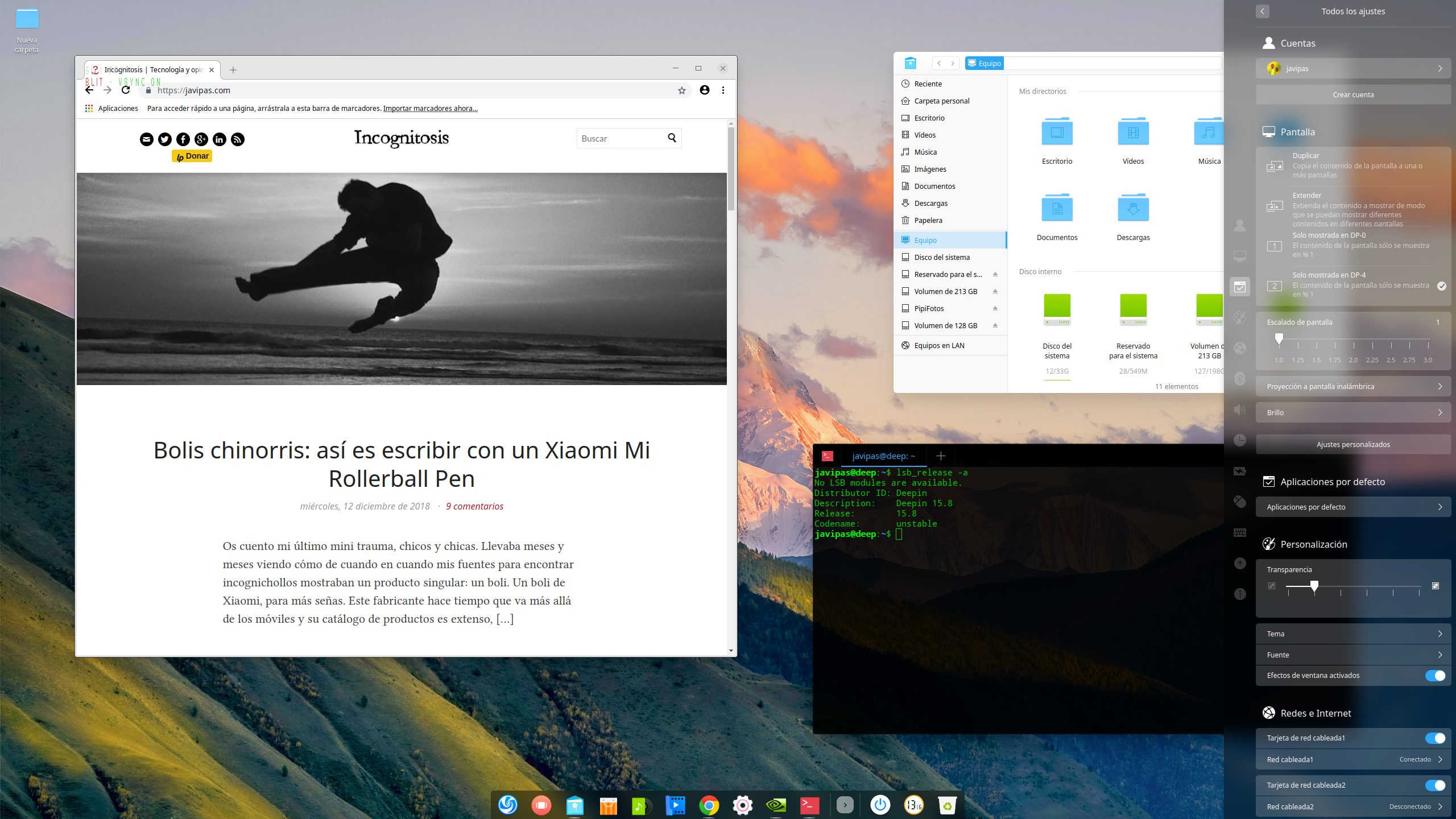 Total, que así están las cosas hasta que me encontré en Forbes (toma ya) con un artículo sobre Deepin, una distro que apenas conocía pero que de repente redescubrí por esa interfaz estupenda. "Jopes, eso tengo que probarlo", me dije. Y así se quedó la cosa, en ese rinconcito de mi cabeza que está lleno de estas historias de esas de "jope, tengo que probarlas". No hubiera pasado nada distinta con esa intención en particular si no fuera porque poco después aparecía en Ars Technica un análisis de la última versión de Elementary OS. Los astros se alineaban, y el "jopes, esto tengo que probarlo" se hizo mucho más real.