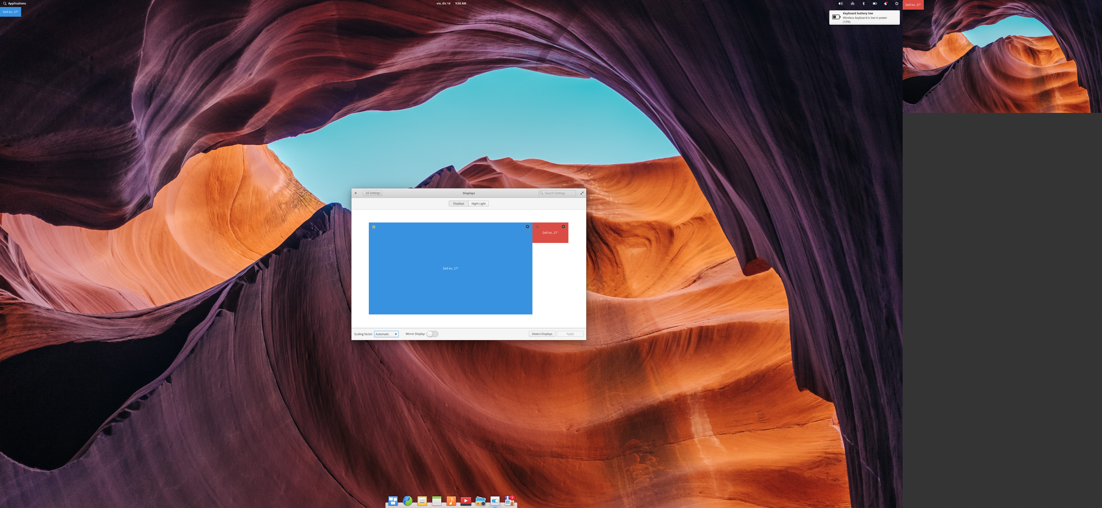 Dicho y hecho. Hace un par de semanas dediqué un día tonto y gris del fin de semana a instalar distribuciones y ver cuál se ajustaba más a mis necesidades. Probé Deepin y probé Elementary y ambas me hacían la puñeta con el soporte del monitor 5K externo. Se podía trabajar con ellas pero era un poco engorroso y yo necesitaba soporte total, así que probé alguna más como Linux Mint que funcionó bien pero cuya interfaz base (Cinnamon) no me convenció, y también me dio problemas con las pantallitas. Incluso probé KDE neon para darle un tiento a las nuevas opciones de un entorno de escritorio que siempre me pareció estupendo. Sorpresa de las sorpresas (o no), lo sigue siendo y tiene cosas chulísimas, e incluso estuve maqueándola un poco y probando cosas como Latte Dock que permiten tener un dock bastante simpático en la distribución. Que recuerde (han sido varias distros y no cogí notas ni saqué capturas a muchas, porras) todo funcionó bien en KDE Neon, y de hecho el soporte del monitor externo es excepcional, con un menú tipo el de Windows que te permite seleccionar fácilmente si quieres ampliar pantalla, hacer espejo de las dos o utilizar solo una u otra.