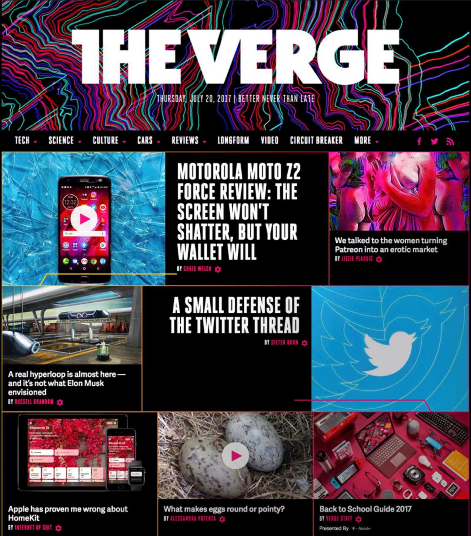 Sigo sin estar del todo de acuerdo con algunas otras que parecen venir heredadas de esa tendencia por snapchatizar la web, pero en general soy un lector enamorado de The Verge en forma. Ya no tanto en fondo, porque les veo, sobre todo, perezosos. Para tener los recursos que tienen escriben pocos temas al día —no he contado, pero diría que bastantes menos de los que hacemos en Xataka—, y a menudo desaprovechan oportunidades para escribir temas mucho más potentes cuando tienen acceso preferente a todos los fabricantes y desarrolladores. Pero oye, entiendo que ellos creen que así es como deben hacerse la cosa. Respect.