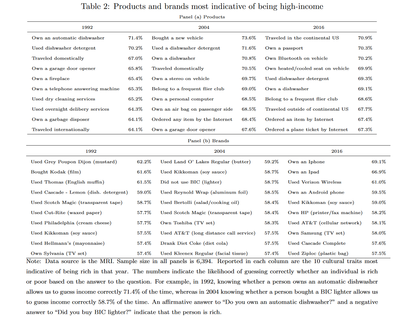 La encuesta revela datos simpáticos de otras dos ediciones anteriores realizadas en 1992 y 2004, y resulta gracioso ver cómo en el 92 lo que molaba era tener un lavavajillas o comprar carretes de Kodak. En 2004 lo que no podías hacer es tener un mechero BIC —herejía de pobres—, pero si tenías una tele de Toshiba molabas.
