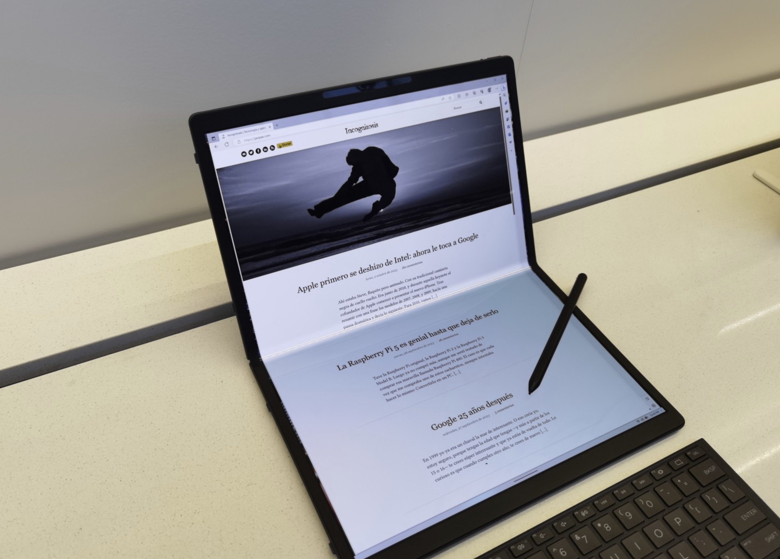 Es cierto que ambos son conceptos de nicho: el plegable es muy caro (5.000 dólares) pero desde luego el concepto es estupendo, mientras que el HP Envy Move, mucho más asequible, tiene mucho sentido si un portátil grande —17 pulgadas suele ser el tope— no te sirve y necesitas más pantalla para trabajar en casa sin tener un PC al uso. Es una ideaza, y espero que tenga éxito porque como concepto mola.