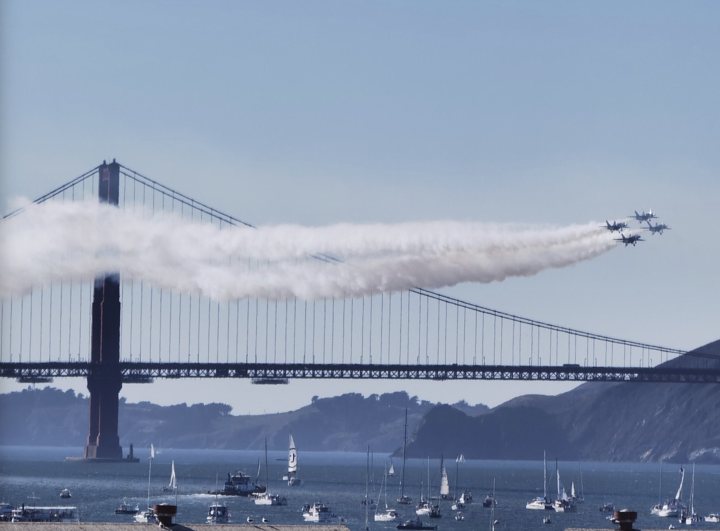 Cuando me ofrecieron el viaje y me apunté no tenía ni idea, pero unos días después me enteré de que justo este fin de semana había eventazo en San Francisco: la llamada Fleet Week, un festival aéreo en el que participaban, entre otros, los Blue Angels. Yo soy un flipado de estos festivales aéreos —voy muchos años al de Gijón— así que cuando me di cuenta tuve claro que era una oportunidad única: jamás los había visto.